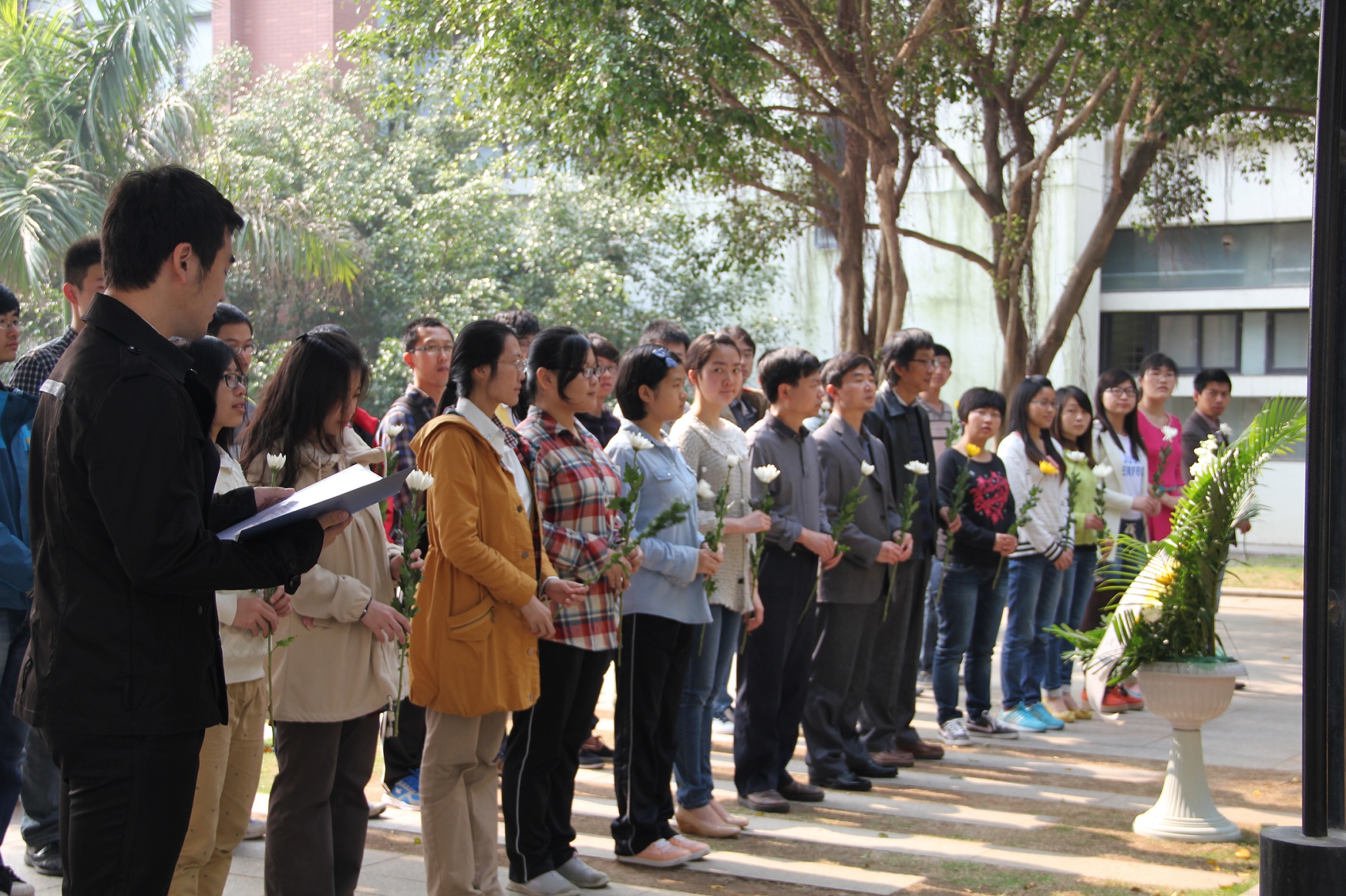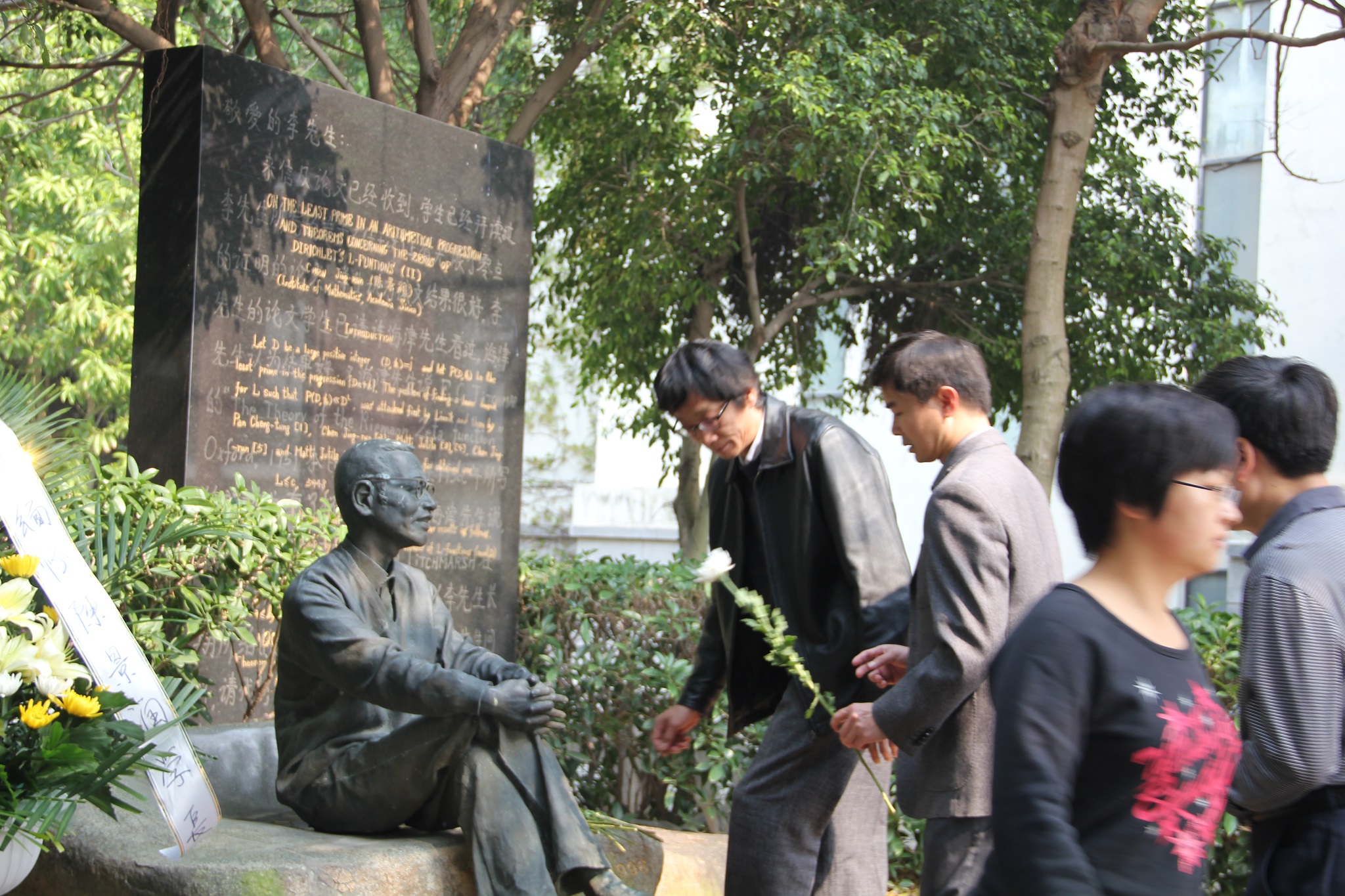 2014年4月5日,又是一年清明节。院党委书记张明智、副院长邱春晖、副院长钱建国、辅导员石义凯以及学生代表齐聚海韵陈景润铜像前,缅怀这位令人无限崇敬的先贤学长、著名数学家。祭扫仪式由学生会副主席李奕豪主持。
