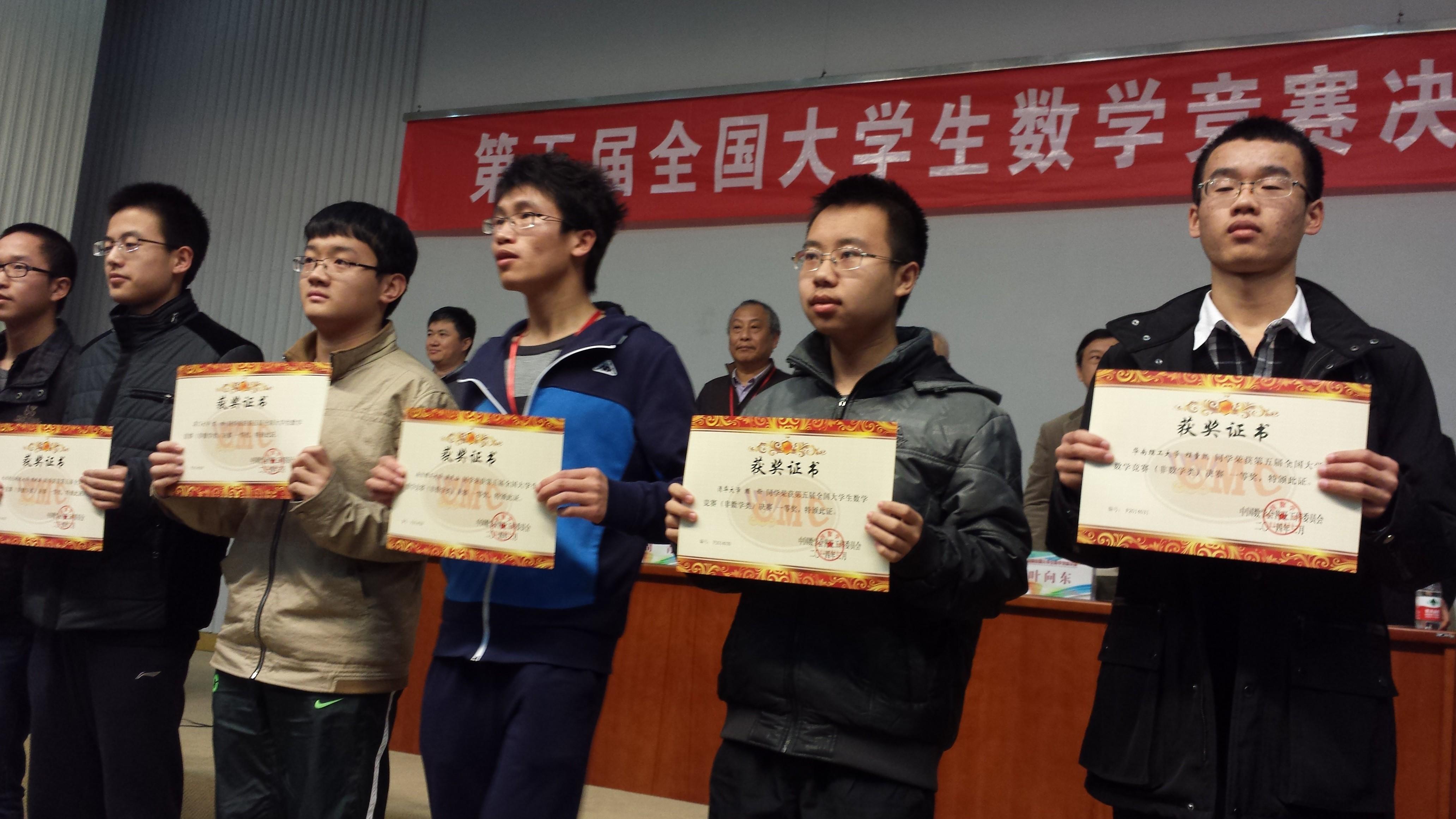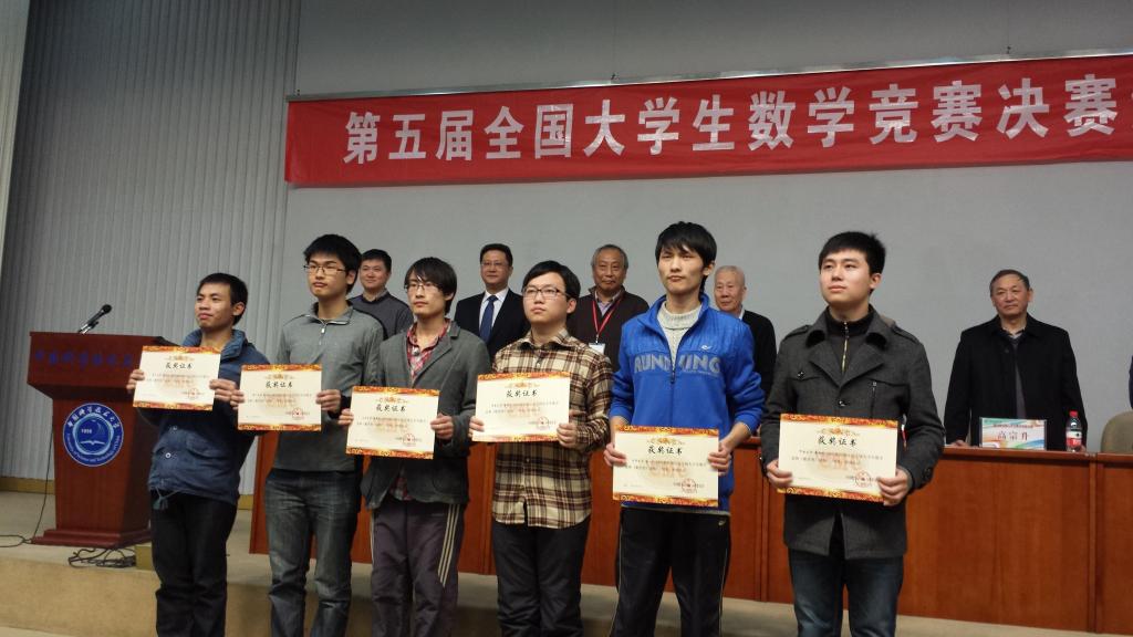 3月15日,第五届全国大学生数学竞赛决赛在中国科学技术大学举行。我院负责组织选拔的6位学生(2位数学专业,4位非数学专业)通过福建赛区的选拔比赛,作为主力队员代表福建赛区进入了最后的决赛。其中我院参赛的2位选手,2011级的钟齐先、许灵达双双喜获数学专业类一等奖,分列第11、12名,本次决赛共有22名参赛选手获得专业类一等奖。在非数学专业类的决赛中,来自信息科学与技术学院2012级本科生艾杨喜获一等奖,信息科学与技术学院曹亨、经济学院董安澜获二等奖,9001cc金沙王哲辉(转专业)获三等奖。