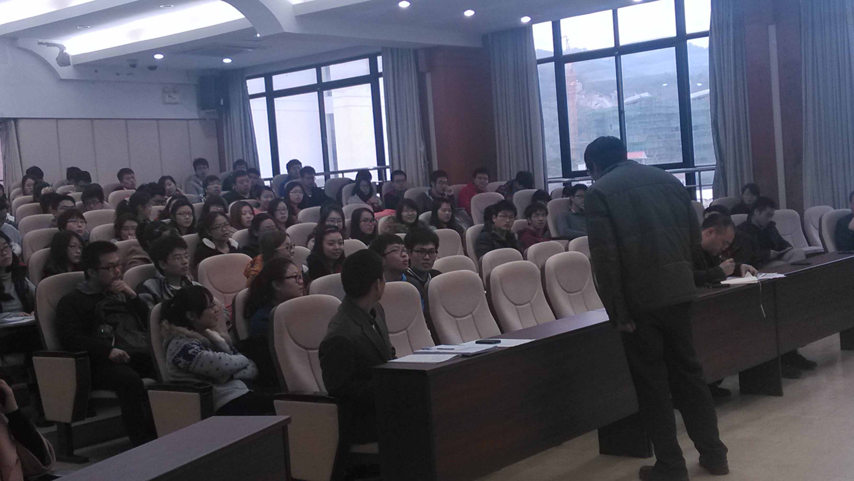 首先,钱建国副院长向同学们介绍了本科生教学方面的工作。他介绍了分管本科生教学的各位老师的职责,刘轼波老师负责本科生的教学计划和学分要求,黄荣坦老师负责本科生的毕业审核事宜,杜魁老师负责保研工作以及基地班的管理,黄晨龙老师负责本科生教学的日常管理工作。他指出,为更加方便、规范同学们的办事流程,同学们要关注学院网站的办事指南,要求同学们严格按照办事指南的程序办事,提醒同学们多关注学院网站本科生教学栏目。刘轼波老师向同学们介绍了我院教学计划和学分要求,并提醒大家及时核查所修学分以及将要学习的课程。黄荣坦老师介绍了往届毕业生的毕业情况,通过数据的分析警示大家,让同学们对自己的大学生涯乃至人生进行合理的规划,强调态度决定一切,在没有毕业“清考”情况下,要求同学们端正态度。随后,负责基地班管理工作的杜魁老师向11级同学介绍了有关推免保研、校际交流的各项工作,并给出了很多非常有意义的建议。