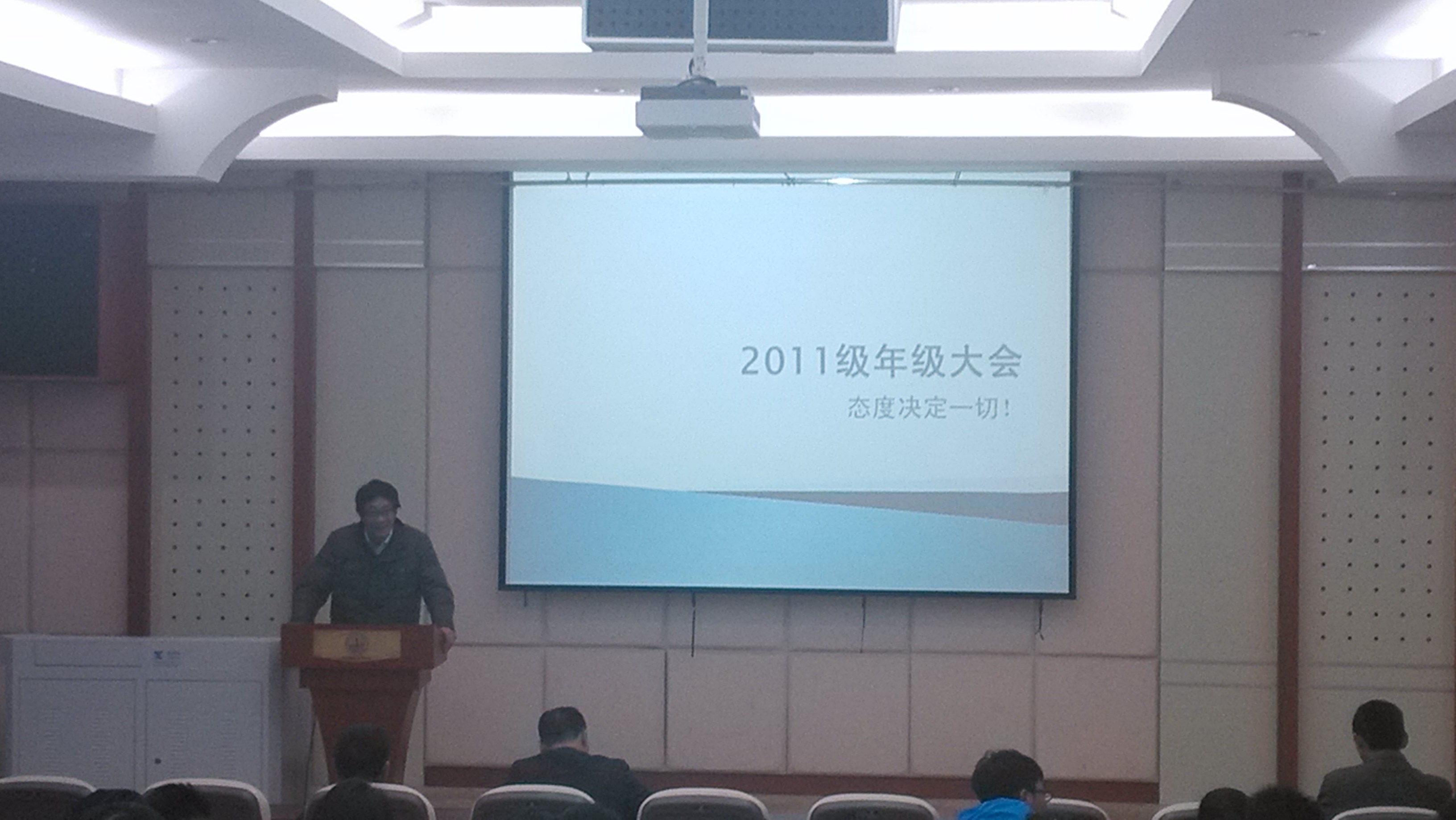 最后,郑诚明书记对此次年级大会进行了最后的总结,对11级的同学提出了希望和要求。他强调了学风建设的重要性,指出宿舍环境对同学们的重要影响,并提醒同学注意公寓的施工安全,就同学们常见的心理问题表示关注,要求同学们进行合理的调节。