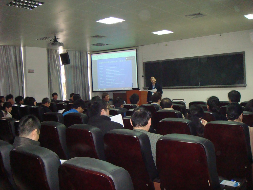 报告会上,复旦大学的专家分别做了题为《Kohn-Sham密度泛函理论中的特征值问题求解》、《Probabilistic numerical methods for BSDEs and PDEs》、《A Filter Active-set Algorithm for the Nearest Correlation Matrix with Factor Structure》、《Parameter identification in non-isothermal nucleation and growth processes》的报告。我院白正简、吴聪敏、曹娟、陈竑焘老师分别作了《A Fast Alternating Minimization Algorithm for Total Variation Deblurring Without Boundary Artifacts》、《MD simulations for motions of evaporative droplets driven by thermal gradients》、《Non-tensor-product spline and its application in surface reconstruction》、《Finite element exterior calculus for parabolic problems and its application》的报告。