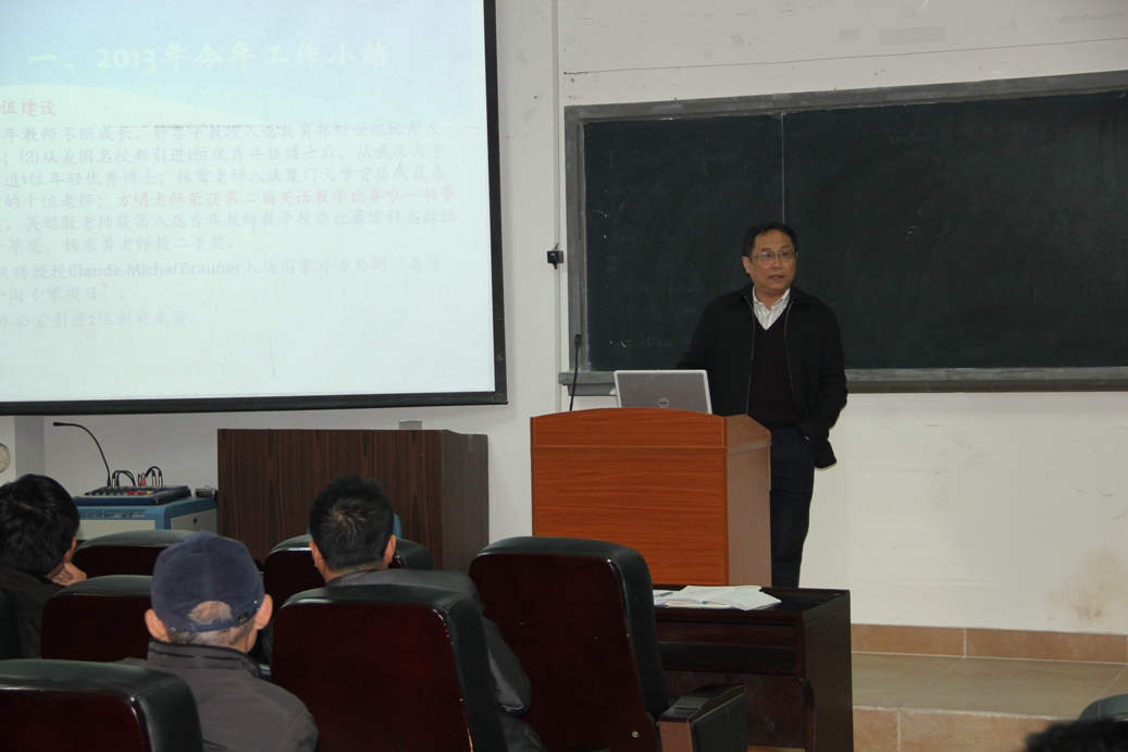 1231日下午,学院在实验楼105召开2013年度教职工大会,通报2013年的主要工作和2014年度的工作计划,学院全体教职工参加了会议,会议由工会主席伍火熊主持。