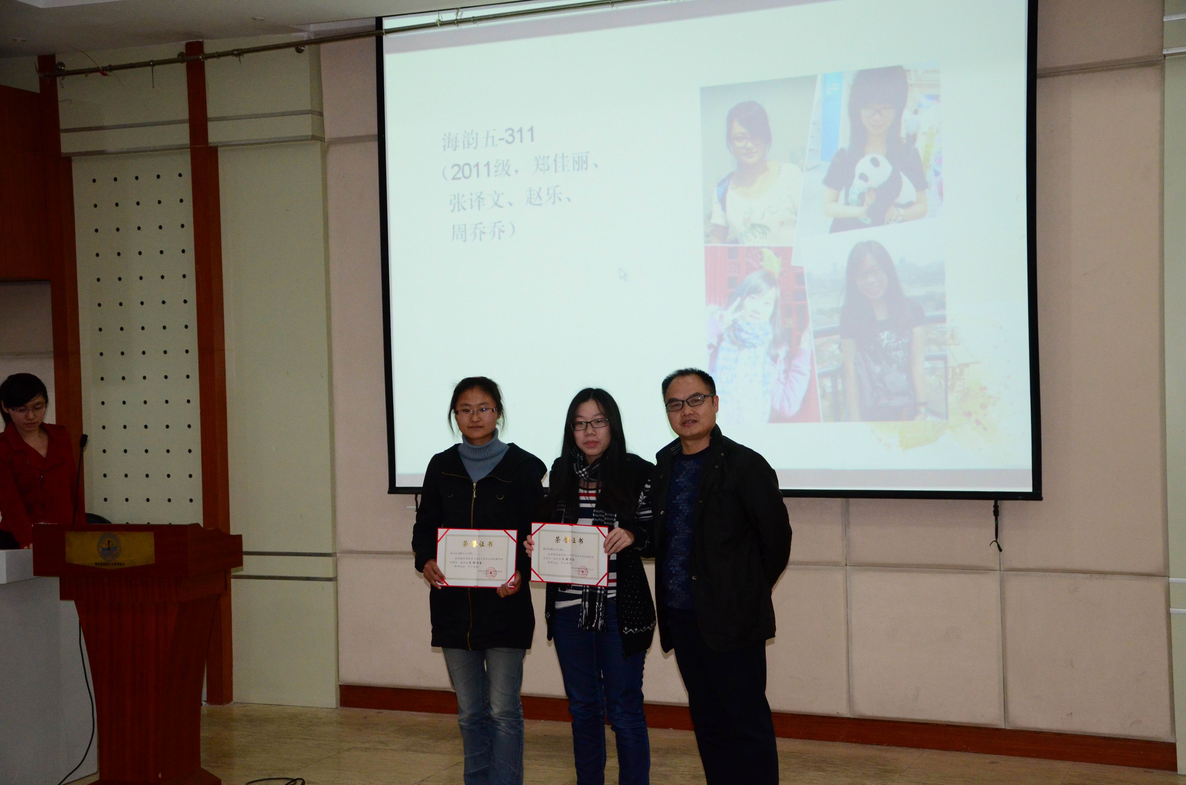 接下来由院学生会督导部部长张译文汇报本次文明宿舍创建活动概况,她总结了本年度的卫检情况,向大家展示了十佳文明宿舍公约、三行家书获奖作品及宿舍美化大赛优秀寝室。之后,党委副书记郑诚明为省级文明宿舍H5-223、H5-311颁发了获奖证书,团委副书记陈向柳和辅导员石义凯为院级文明宿舍H5-118、H5-123等13个寝室颁发了获奖证书。