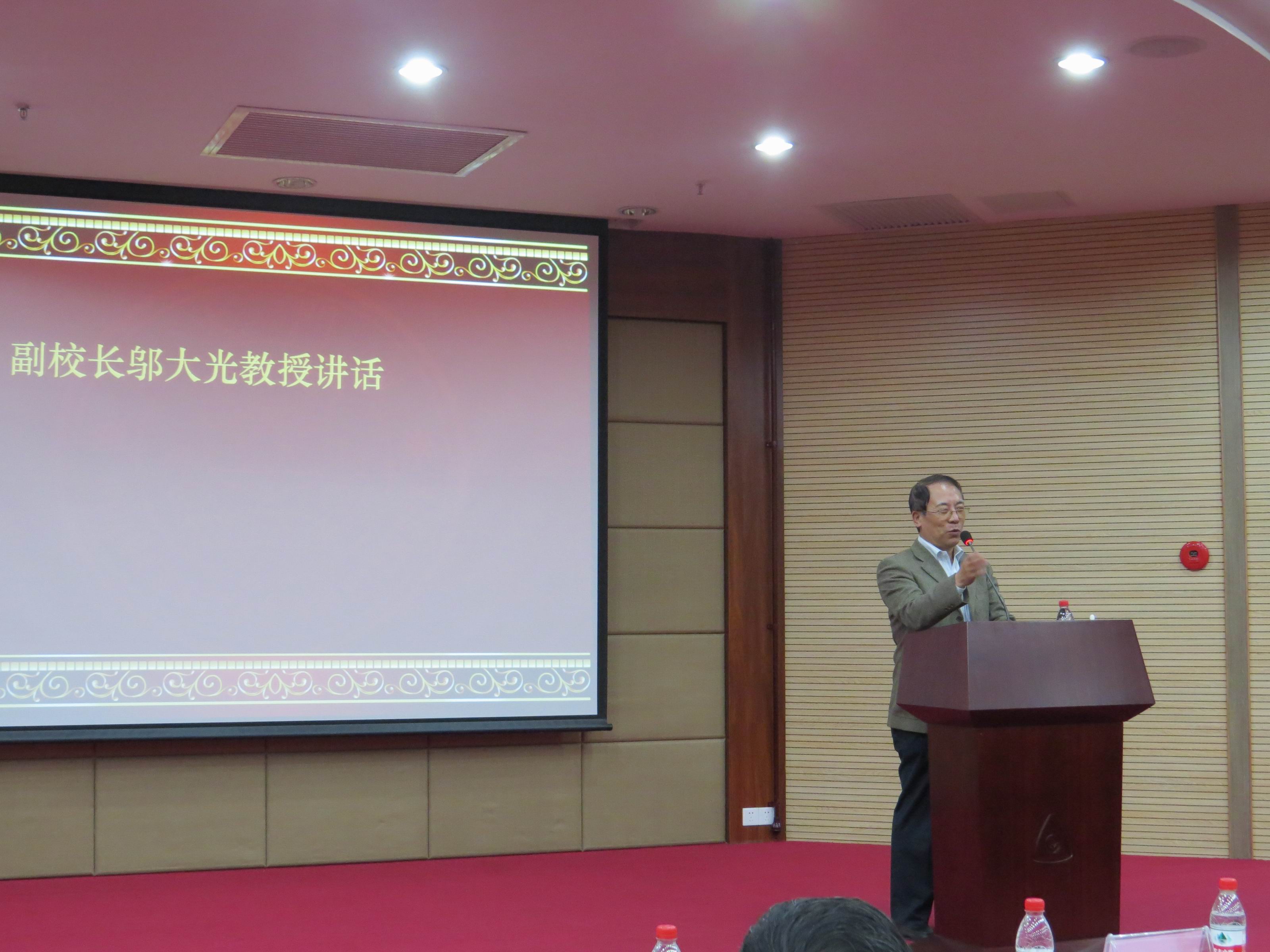 最后,邬大光副校长讲话。邬大光副校长以亲切的口吻和谈话的语气,与在场的同学分享了他周围的数学人的故事和经历,指出了学习数学的优势,鼓励大家进入数学领域。他引用时任厦门大学校长的王亚南先生和陈景润先生的事例,希望老师要做一个伯乐,而同学们则要努力使自己成为良驹。“景润杯”数学竞赛历经十年,竞赛水平越来越高,影响力越来越大,成为了厦门大学的精品赛事,通过该项赛事挖掘了大量数学人才,他希望把赛事提升到更高更大的平台。发言的最后,他提出了对数学学子的希望,要学习陈景润的科学精神,要喜欢并热爱数学。他强调,陈景润是我们厦大数院40年前的辉煌,一个陈景润还不够,今后数院的辉煌,还要靠大家。期待在座的同学们能够超越陈景润,再创辉煌。