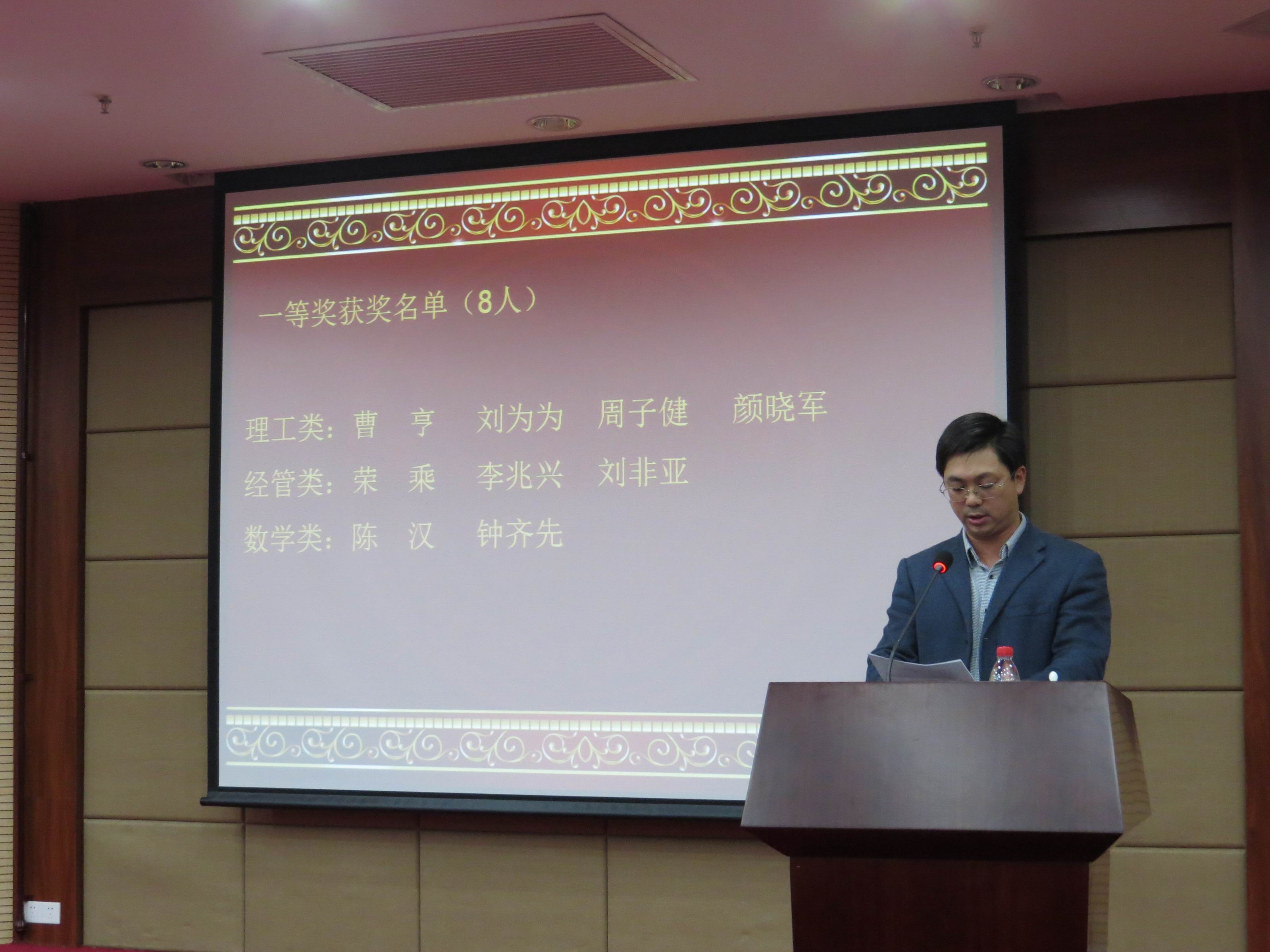 首先,9001cc金沙院长林亚南教授讲话。林院长在发言中引述了陈景润先生的事迹,为同学们呈现了在困难中勇攀科学巅峰的陈景润,阐释了厦门大学四种精神之一----陈景润的科学精神。他鼓励同学们要在解决问题的同时,更多地发现问题,探索问题。最后,他介绍了近期我院在数学建模、全国大学生数学竞赛(福建赛区)等各类竞赛取得的佳绩,以此勉励同学们加倍努力。同时,向获奖同学表示了由衷的祝贺。