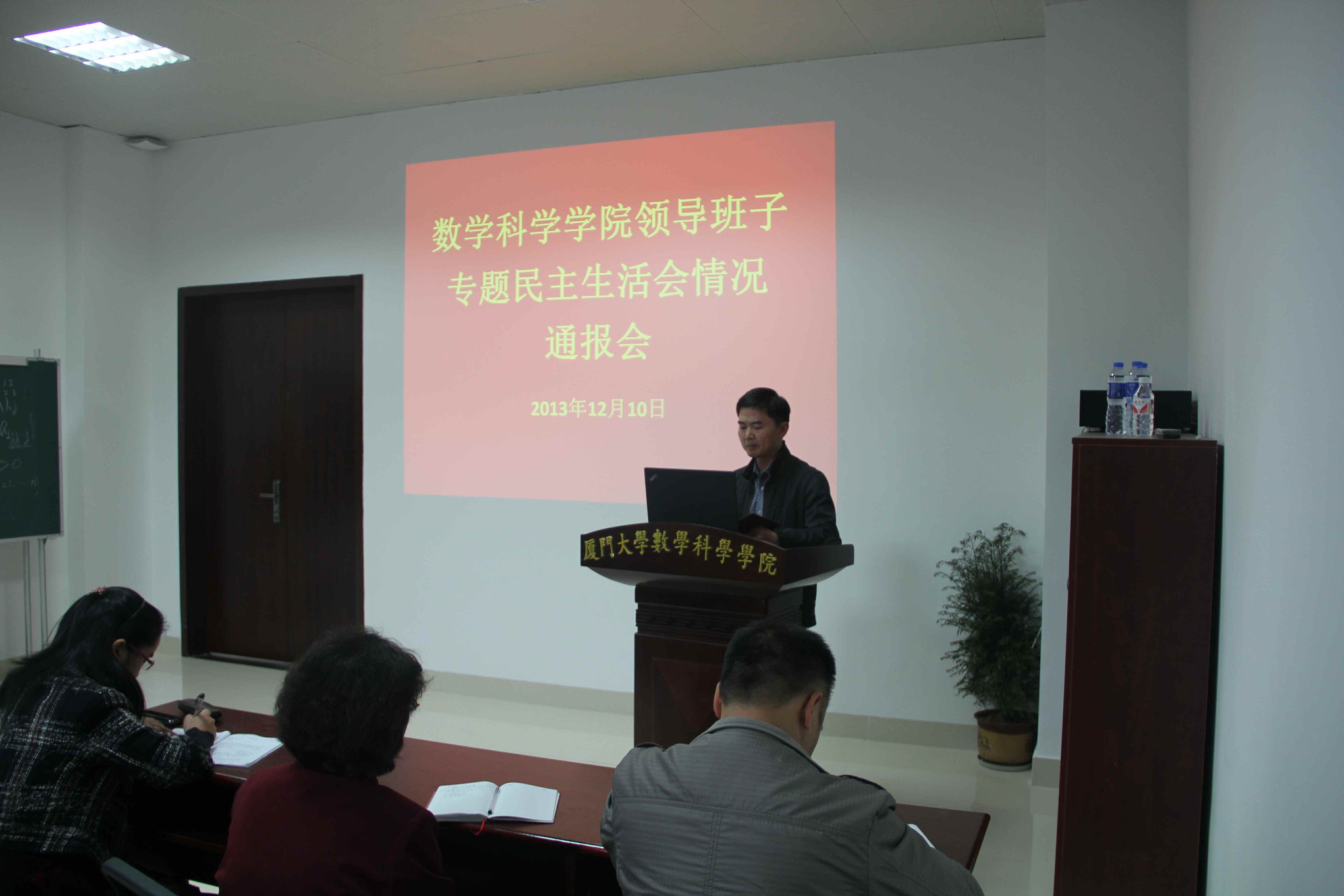 12月10日下午,9001cc金沙党的群众路线教育实践活动领导班子专题民主生活会情况通报会在海韵实验楼108举行。学院党政领导、系所负责人、科级以上干部、全体教师职工党员、非中共党员教职工代表和学生党员代表参加了会议,第四督导组刘希平莅会。