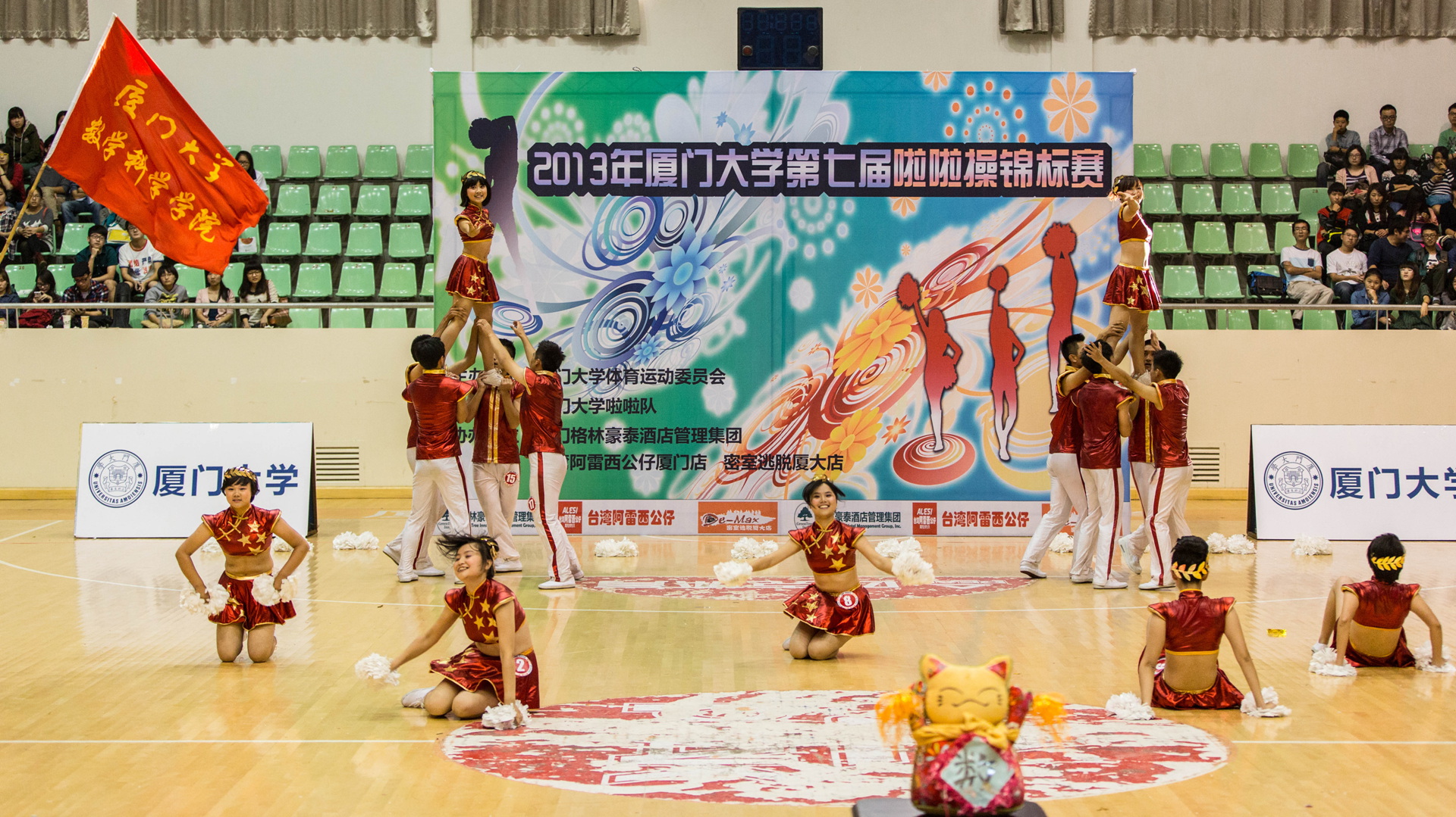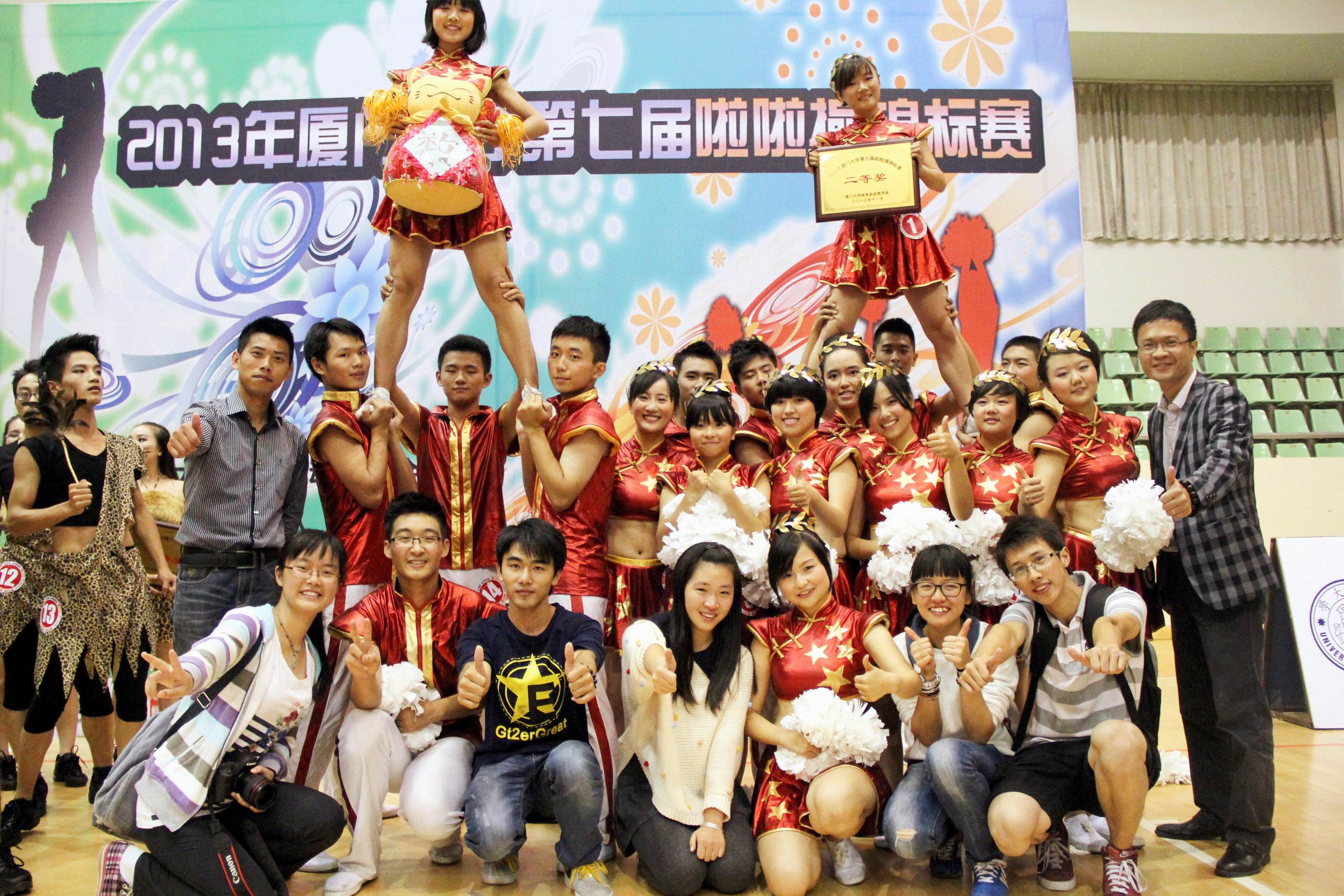 11月17日15时,厦门大学第七届啦啦操锦标赛在本部明培体育馆激情上演。本届比赛共有22支来自各个学院的队伍。经历了一个多月的辛苦排练,9001cc金沙的啦啦操队员为在场的观众带来了一场精彩视觉盛宴,最终以8.82分的高分排名第七,荣获二等奖。