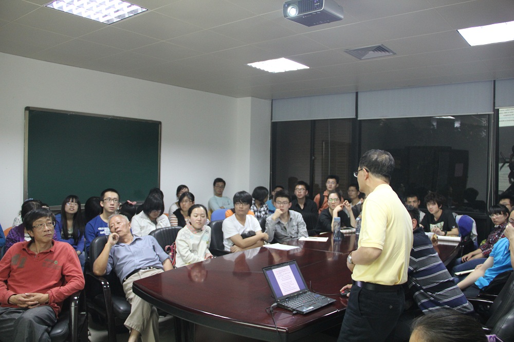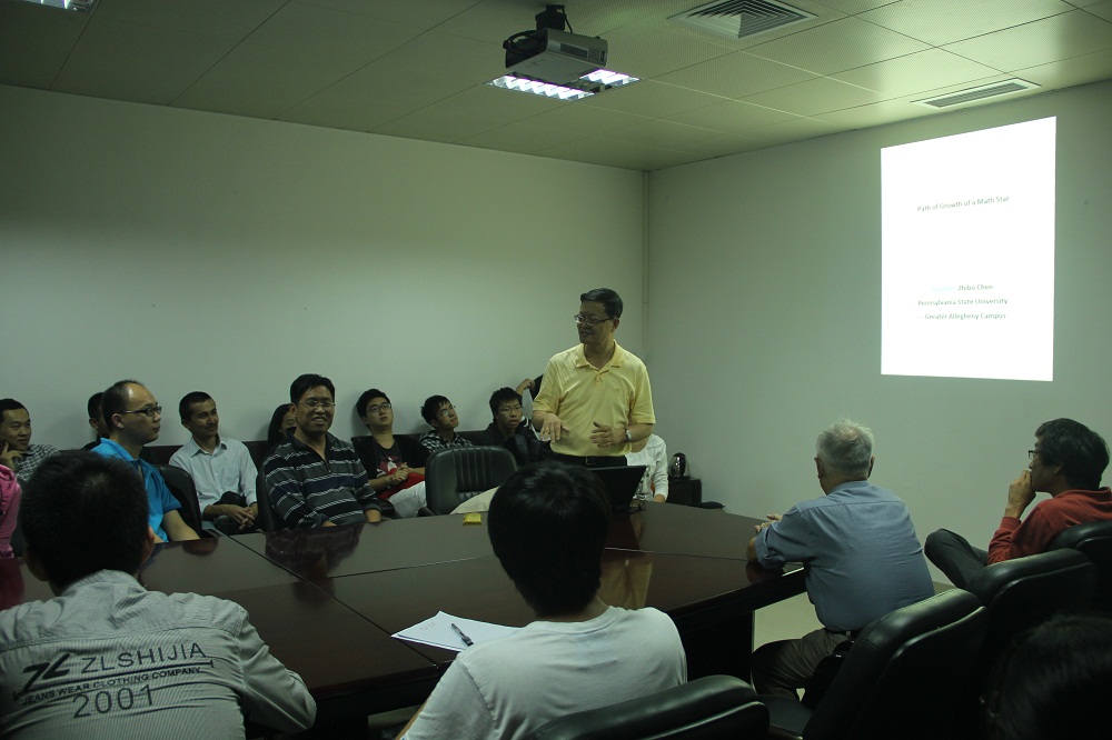 2013年10月29日晚19:00,我院“魅力数学”系列讲座新学年第一讲在海韵行政楼举行。本次的讲座的主讲人是来自宾夕法尼亚州州立大学的陈治柏教授,主要研究方向是图论。