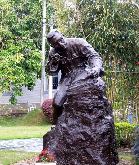 纪念仪式结束后,与会人员来到三山人文纪念园名人雕塑园,为陈景润的铜像揭幕。陈景润铜像由中央美术学院雕塑系张大生教授设计创作,采用浪漫写实主义手法,以“山高人为峰”来表现陈景润在最简易的生活和工作条件下攻克数学难题的场景。雕塑中,陈景润的身躯及叠叠的草稿纸如一座山峰,又似一座丰碑,表现出陈景润坚忍不拔、奋发进取的精神。