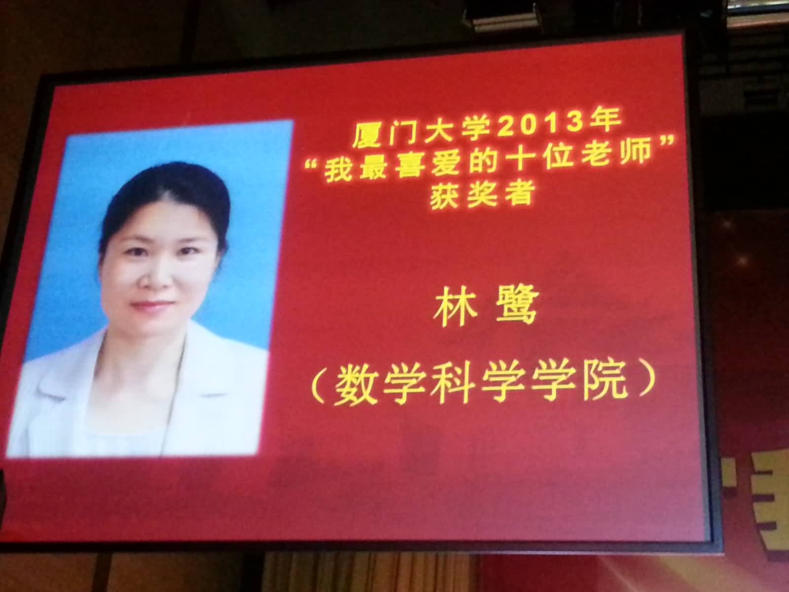 9月25日晚,我校首届“我最喜爱的十位老师”颁奖典礼在科学艺术中心顺利举行。我院林鹭副教授获此殊荣。