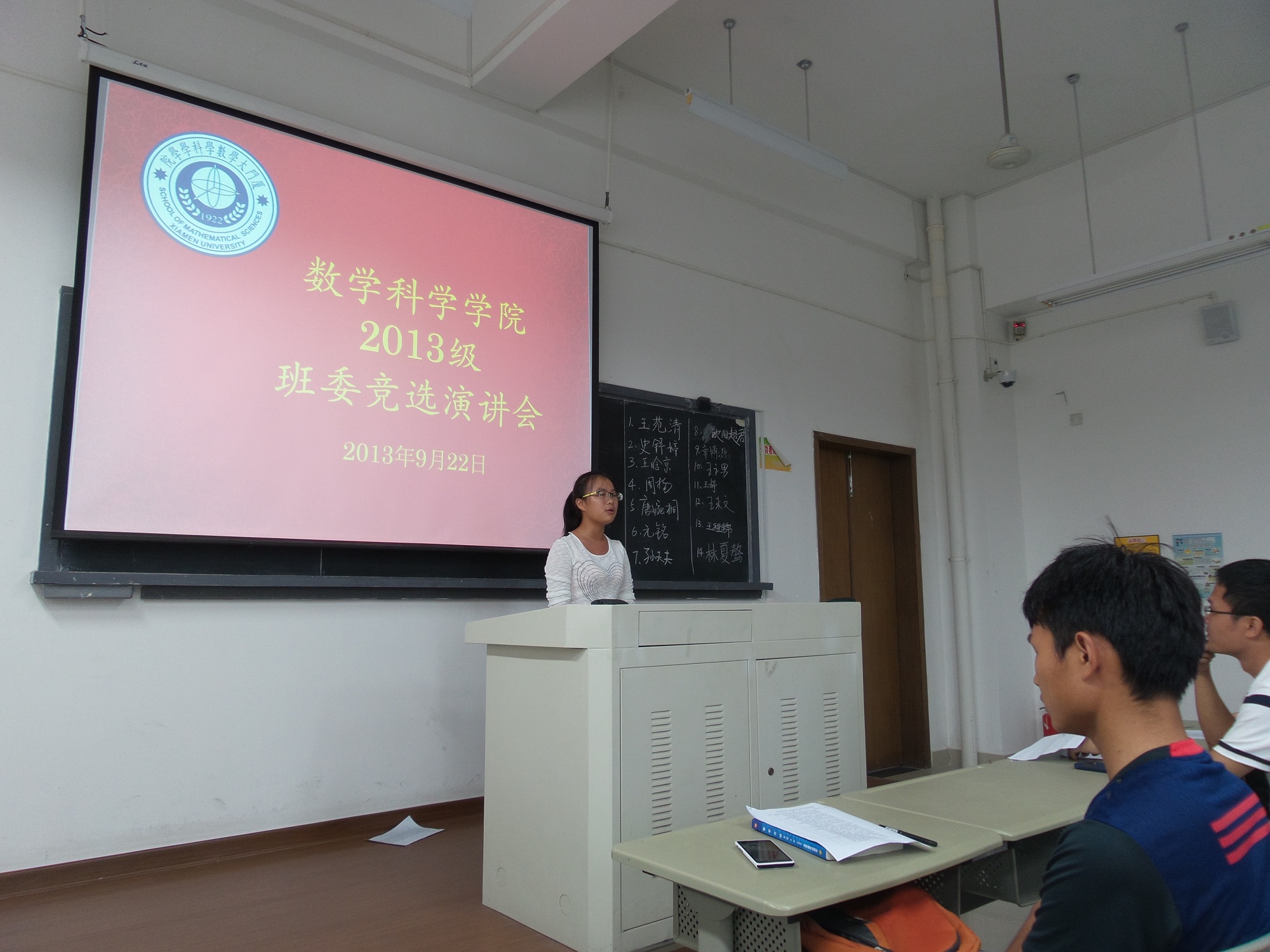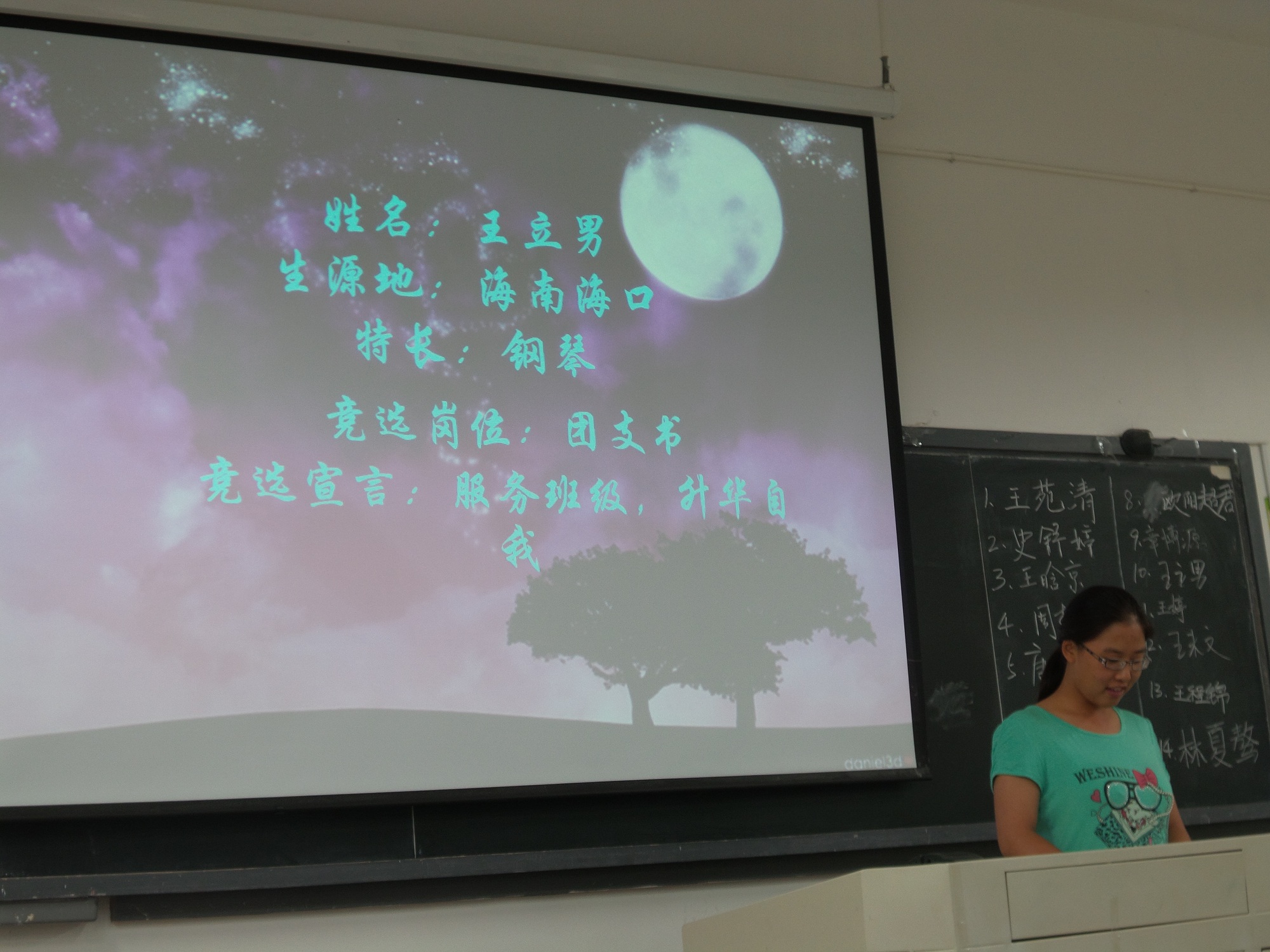 会议16:40正式开始。此次选举将在两个班各产生10名班级委员。主持人介绍了班委的设置及班委在整个学生工作体系中扮演的角色和重要作用,并简单地说明了参选人数、发放选票、宣读相关竞选规则后,竞职演讲正式开始。