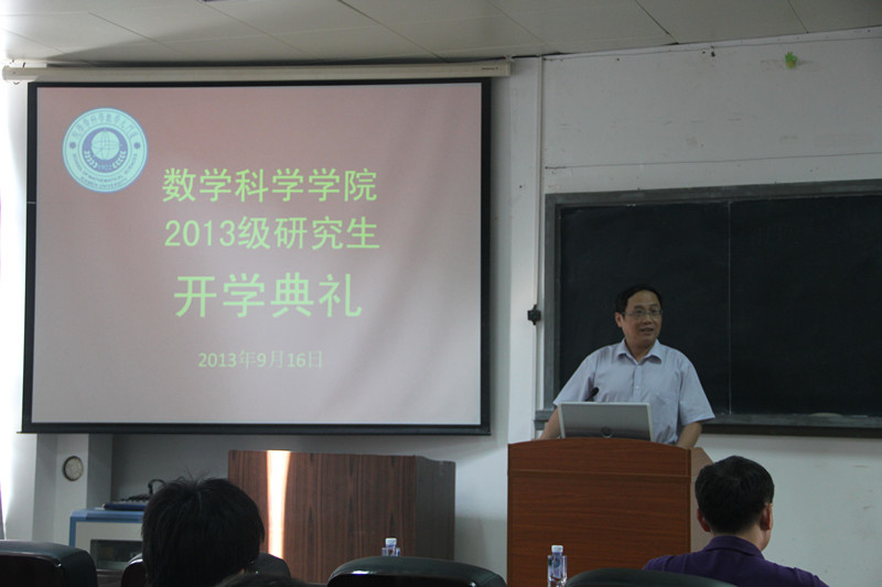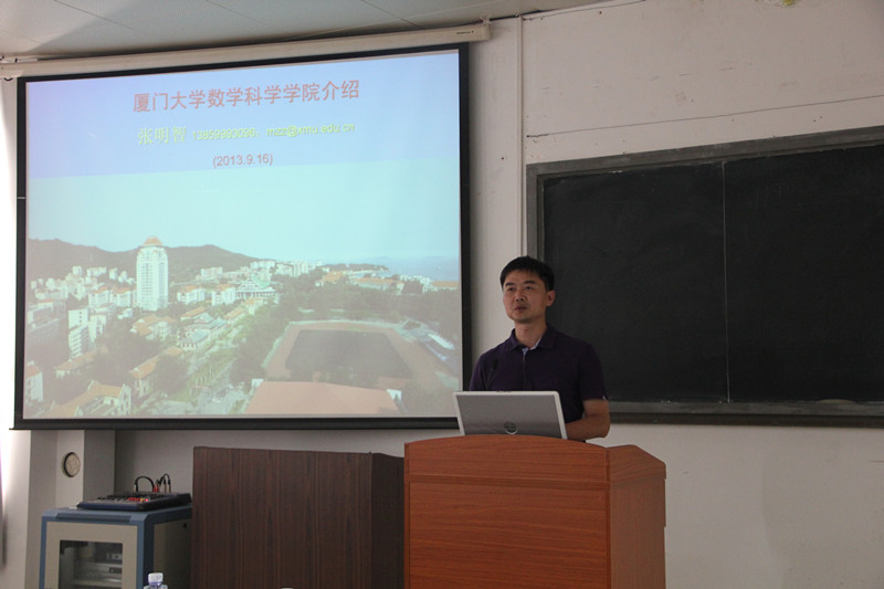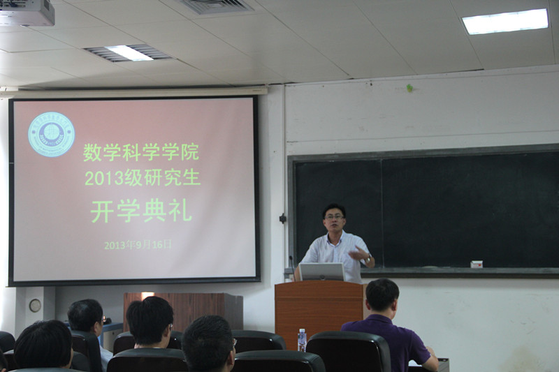 首先林亚南院长发表了致辞。林院长首先祝贺2013级研究生加入到9001cc金沙这个大集体,希望所有的2013级研究生能够尽快融入,调整心态,勤奋刻苦,并鼓励硕士研究生在选择导师方面可以多考虑我院潜力深厚的年轻老师。随后,副院长邱春晖教授向对奖学金的评定,不同专业的导师情况进行了介绍。张明智书记则向大家介绍了数学学院的历史,概况,生源以及师资力量,就业情况等问题,并向所有的新生提出今后学习的几点要求,希望所有的数学学子能够热爱9001cc金沙,热爱厦门大学,并预祝同学们在新的学期里能够学业进步,更上一层楼。