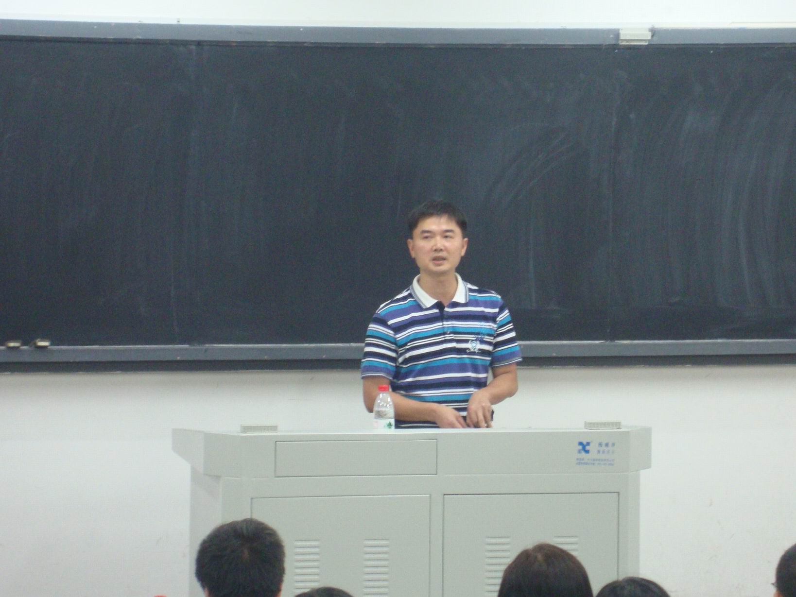 随后,曾经的学长、现在的数学与应用系主任金贤安教授发言,提醒同学们学会数学的同时也要涉猎其他自然科学,社会科学知识,陶冶人文情操,并且要培养综合能力,积极参加有益的活动和社会实践。最后,他赠给同学们“仰望星空,脚踏实地”这句话,希望同学们树立远大目标,同时要脚踏实地地向目标进发。