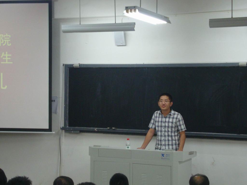 随后,曾经的学长、现在的数学与应用系主任金贤安教授发言,提醒同学们学会数学的同时也要涉猎其他自然科学,社会科学知识,陶冶人文情操,并且要培养综合能力,积极参加有益的活动和社会实践。最后,他赠给同学们“仰望星空,脚踏实地这句话,希望同学们树立远大目标,同时要脚踏实地地向目标进发。