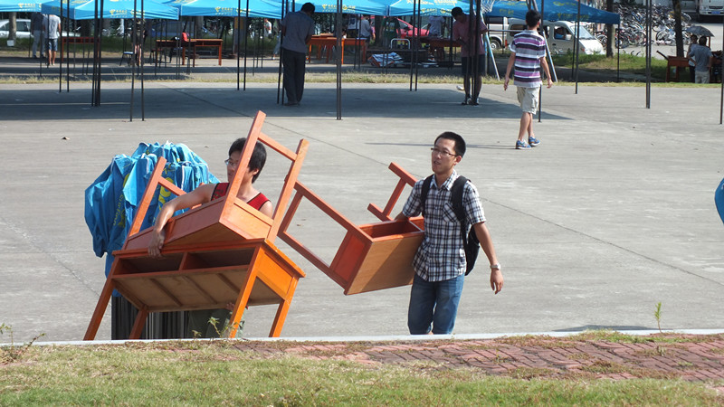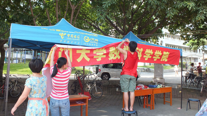 13日下午,研究生会的学生干部及志愿者们就到迎新现场布置,大家各尽其责,有的搬运桌椅,有的搭建帐篷,有的张贴横幅及迎新海报……各项工作都在有序在进行着。到傍晚时候,学院迎新点准备工作也基本就绪。
