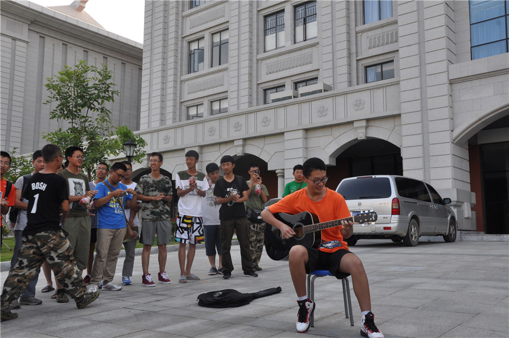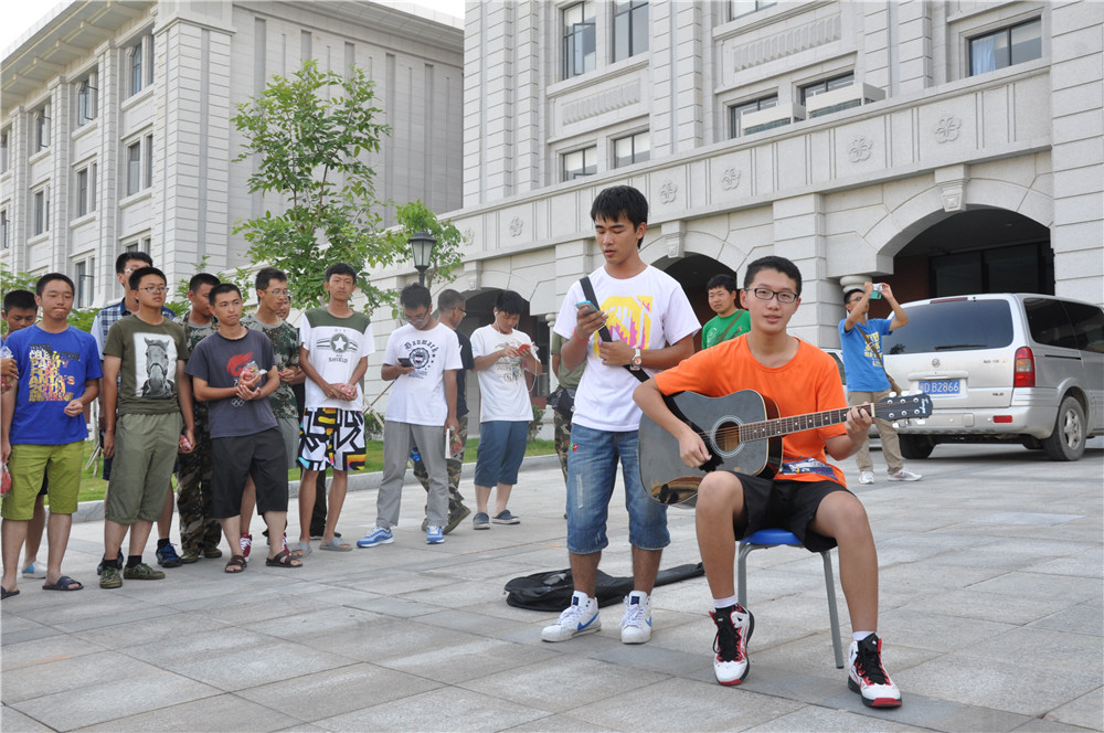 慰问团为2013级的同学们分发了神秘礼物——火龙果,然后就开始了慰问表演。林寻学长的吉他弹唱《情非得已》收获了一片掌声,王颖宇与林寻的合唱引起了许多尖叫,男女同学的互动拉歌将慰问推向了高潮。最后,在“自强,自强……”的校歌声中,慰问活动落下了帷幕。