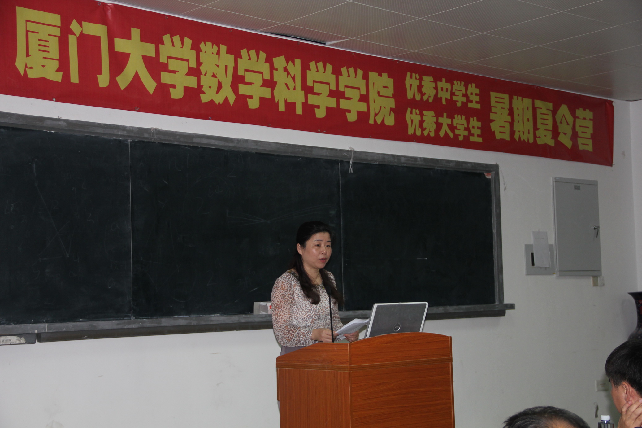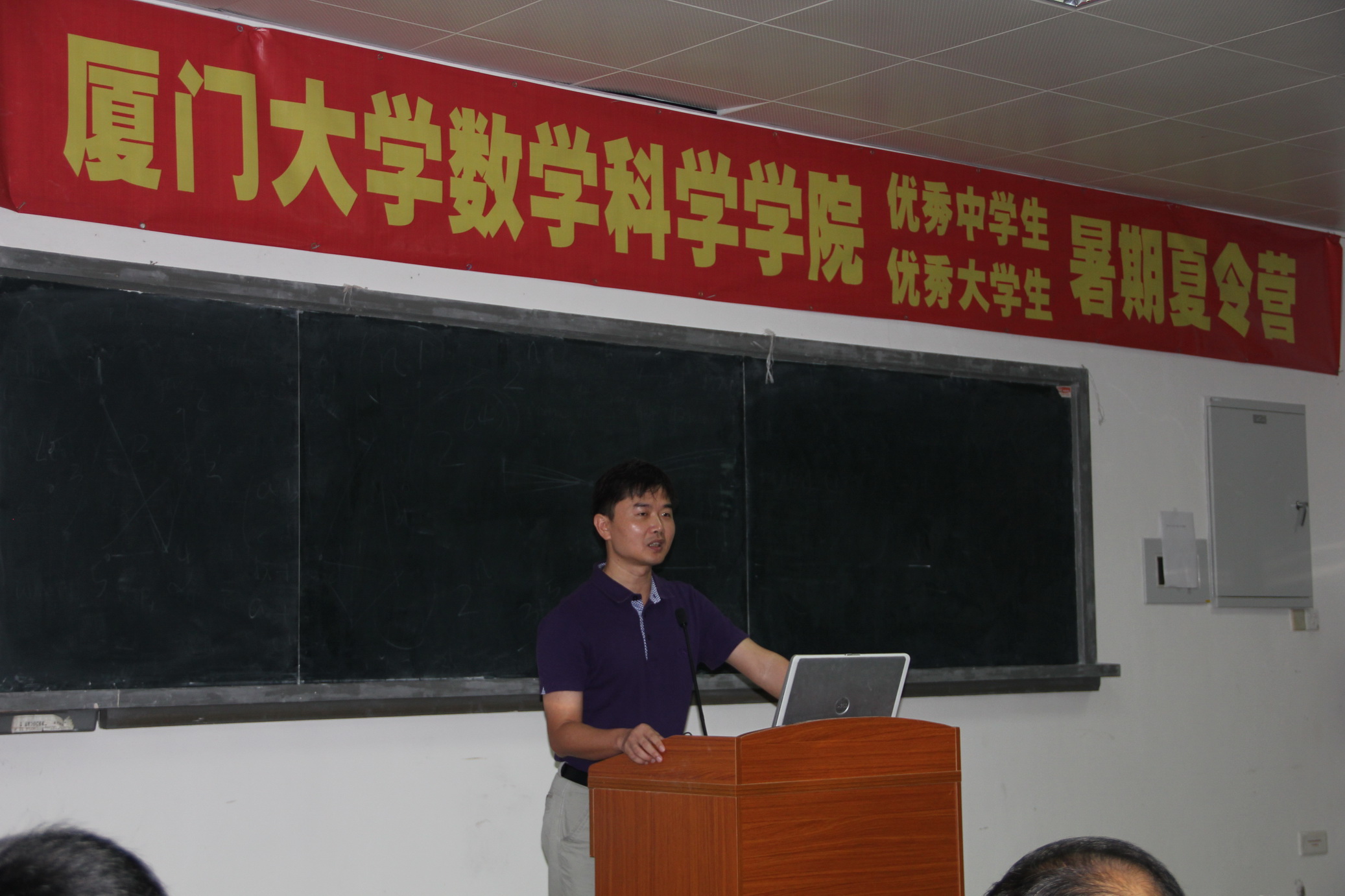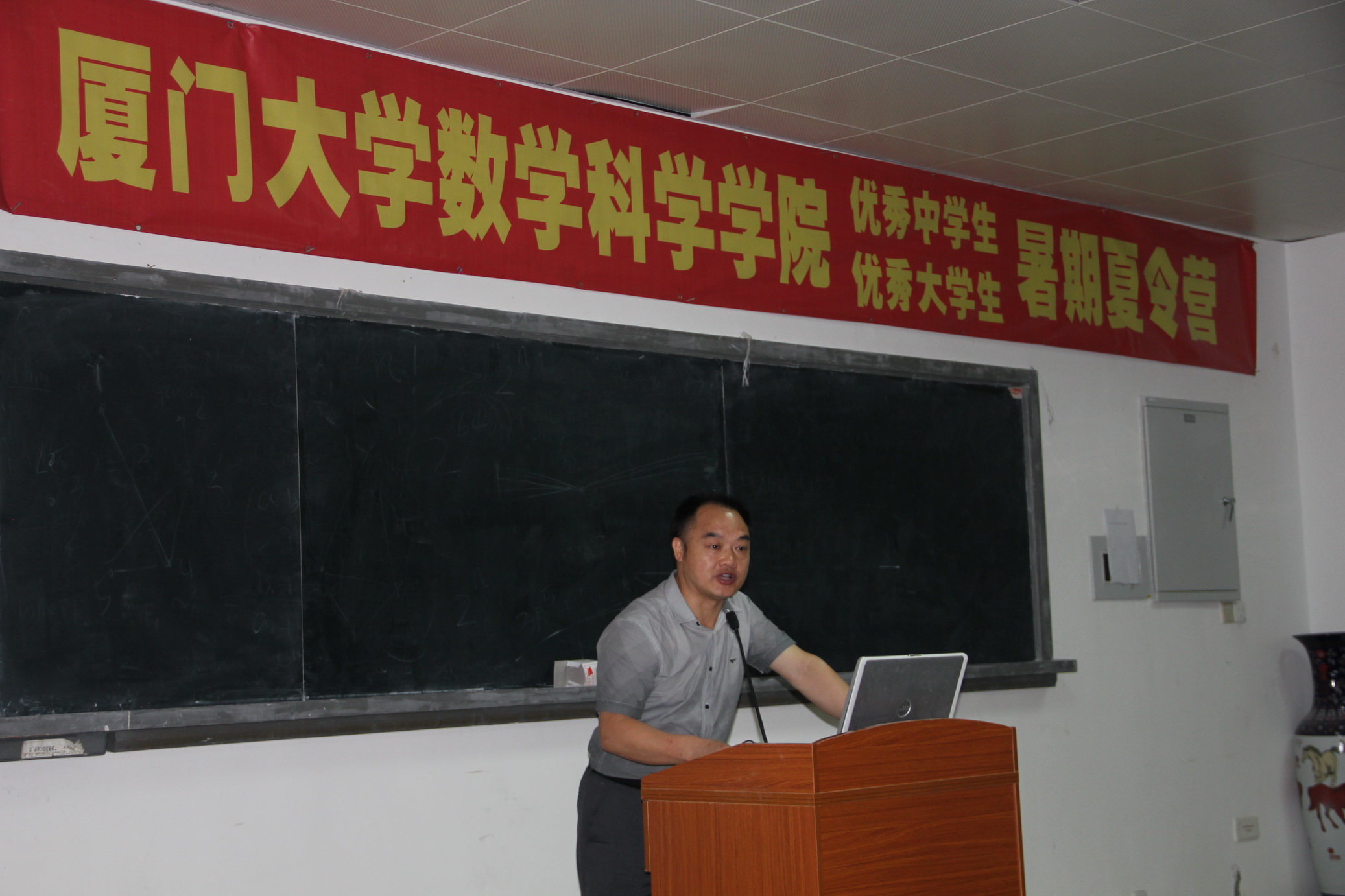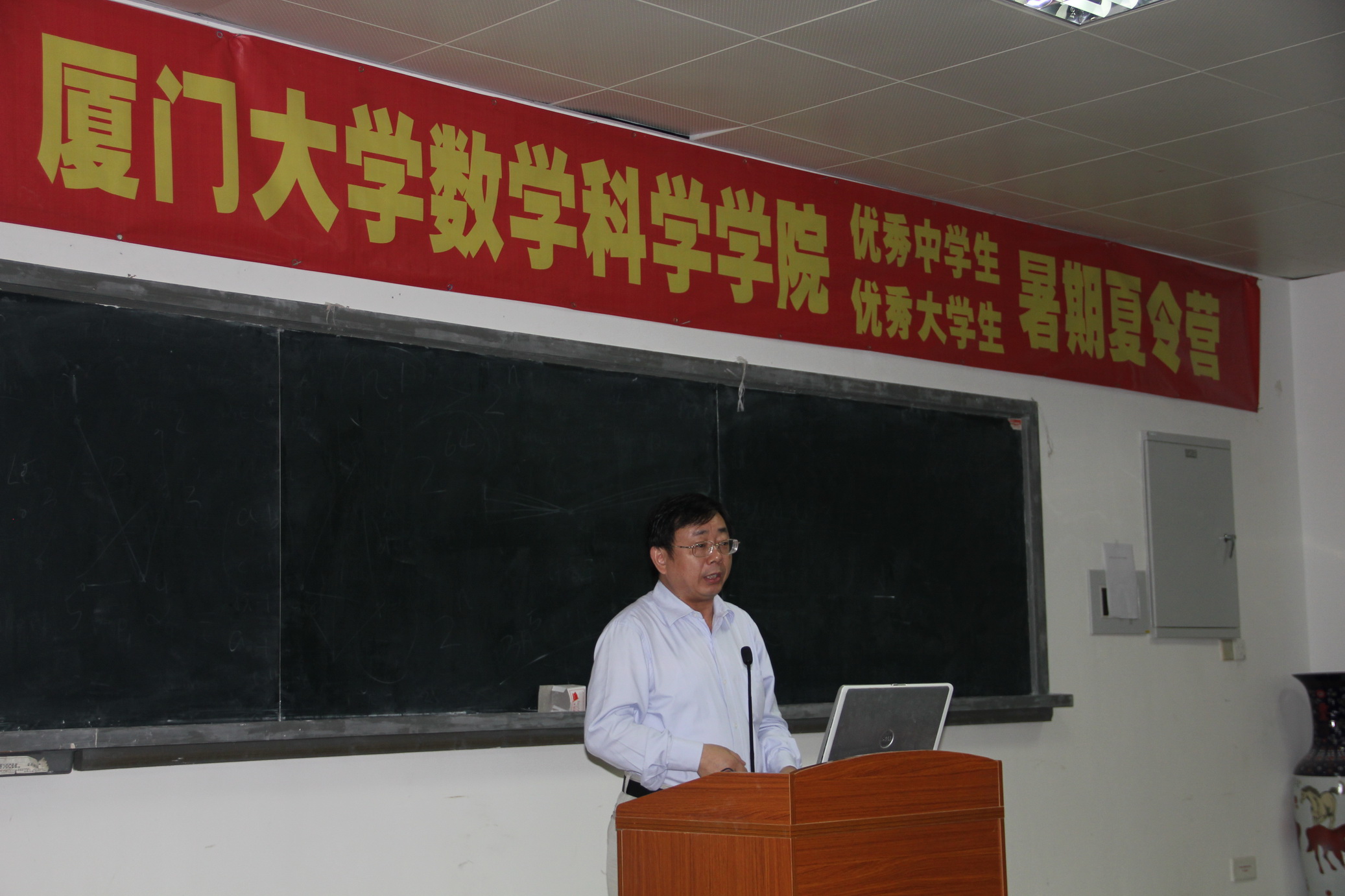 7月14日上午,夏令营在海韵园开幕,校招生办吴国瑛主任、研究生院谭忠副院长、学院党政领导和系级领导参加了开幕式。副院长邱春晖教授主持了开幕式。吴国瑛主任首先致辞欢迎参加夏令营的全体营员,并从校史、师资、校区分布和学科建设等方面介绍了学校概况,让营员对学校有了一个整体的了解。谭忠副院长从研究生出国留学、学制改革以及奖学金等方面介绍了研究生教育状况。学院张明智书记希望全体营员珍惜夏令营的学习机会,深入了解厦大,了解数学学院,欢迎营员选择厦门大学继续深造学习。郑诚明副书记对营员进行安全教育和纪律教育。开幕式后,师生合影留念。