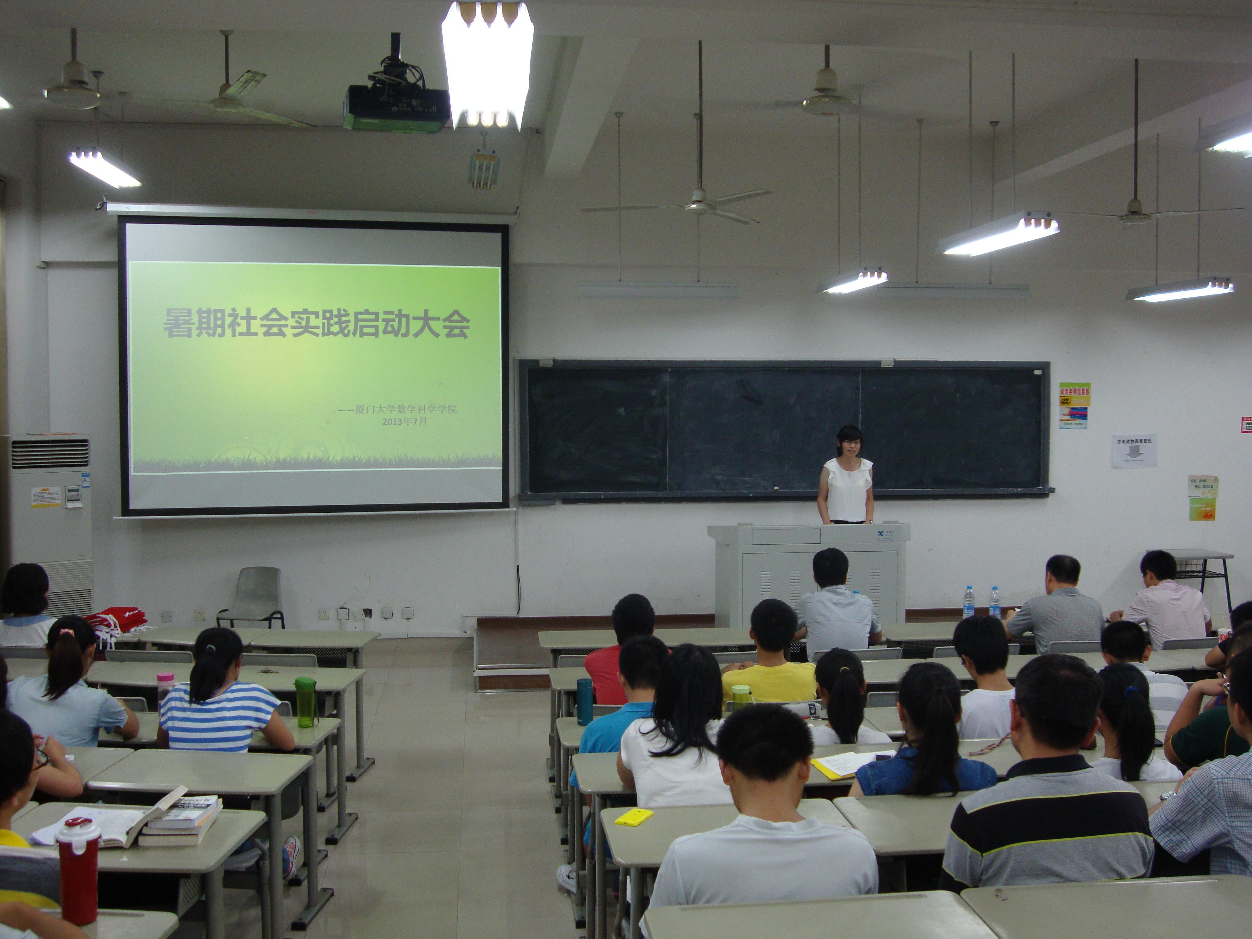 2013年7月8日晚7点,我院2013年暑期社会实践动员大会在海韵204隆重召开。学院党委副书记郑诚明,团委副书记陈向柳,辅导员石义凯老师,以及19支实践队队员出席了大会。大会由2012级陈恬恬同学主持。