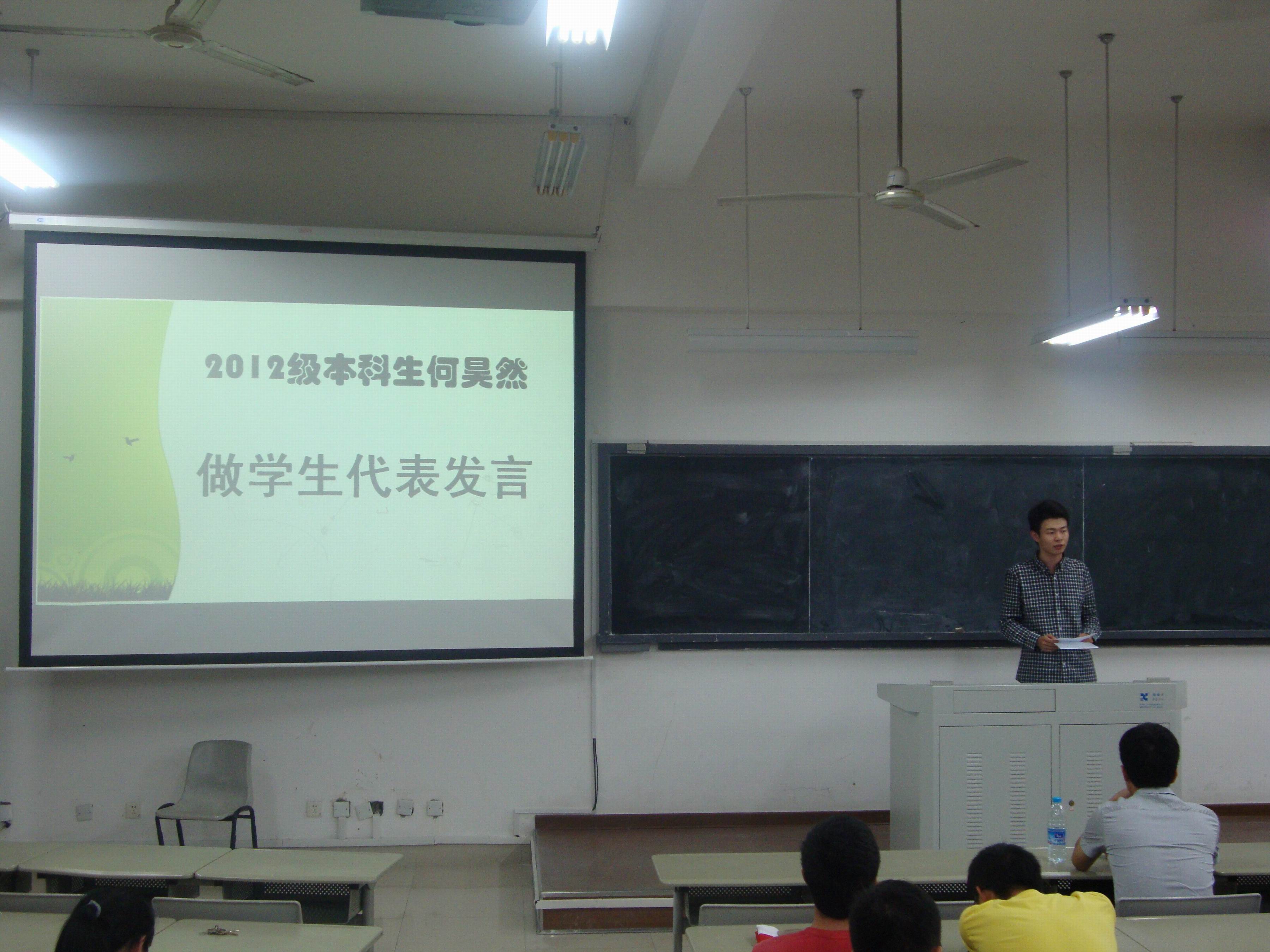 最后,学生代表何昊然同学发言,他表示作为当今的大学生,将深入贯彻落实今年暑期实践的主题“我与我的中国梦”,认真开展暑期社会实践,承诺将珍惜宝贵的机会,锻炼自我,提高自我,服务社会。