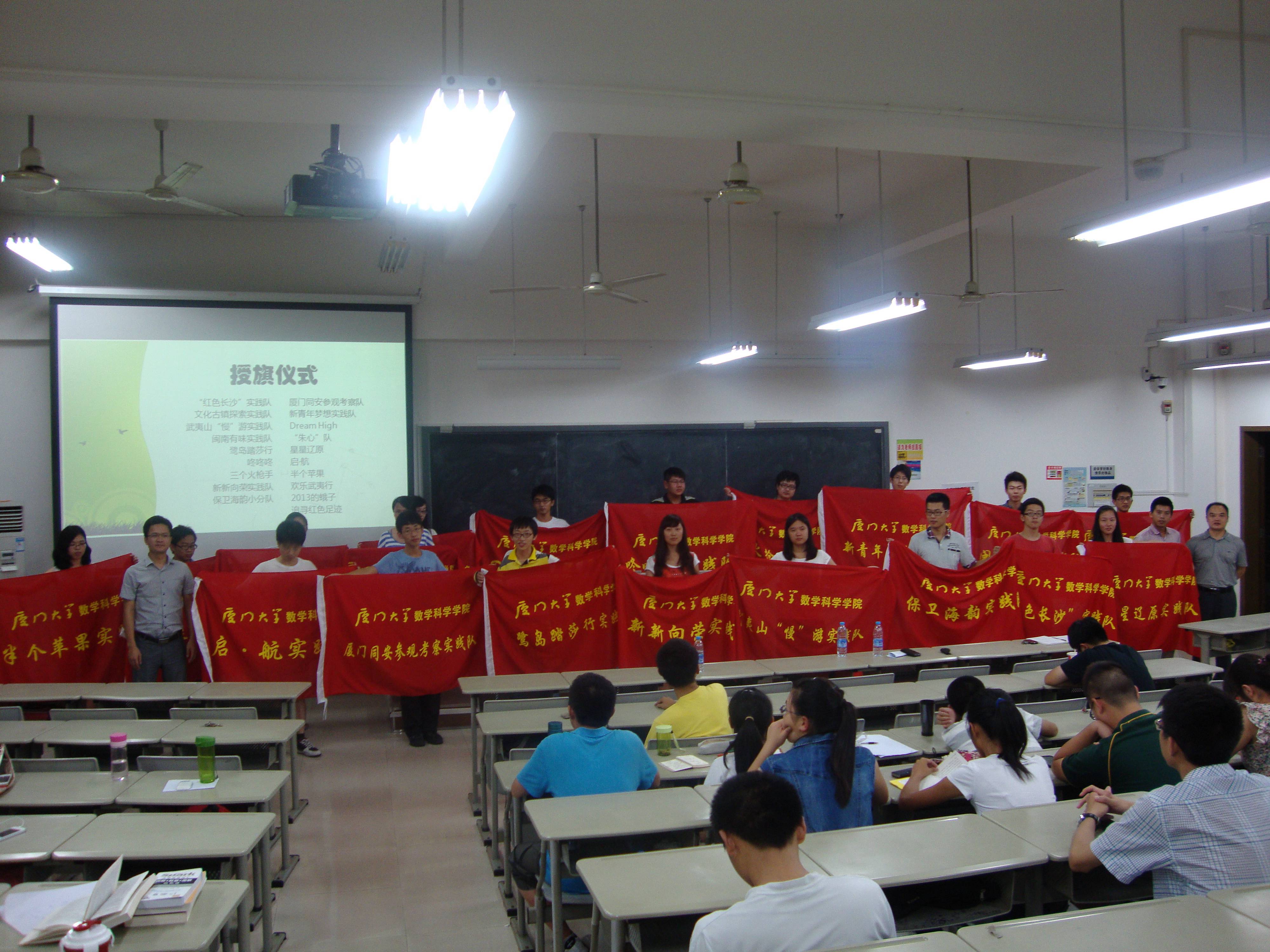 大会第二环节举行了隆重的授旗仪式。郑诚明副书记、陈向柳老师向参加今年暑期社会实践活动的19只实践队代表授旗。2013年暑期社会实践活动正式拉开序幕。