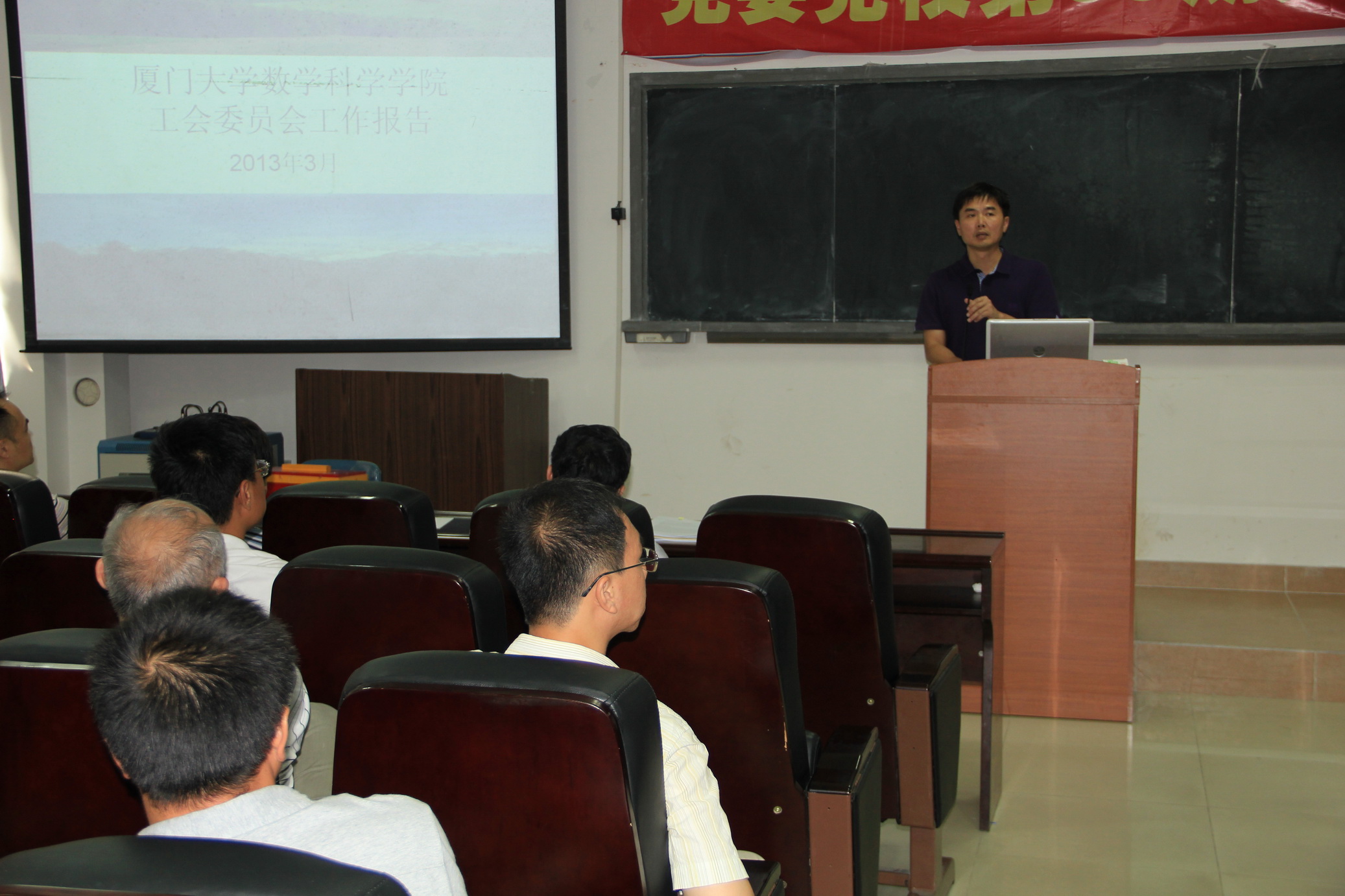 学院工会主席曾吉文教授代表上一届工会委员会做工作报告。报告从上一届工会的成立、取得的成绩、财务状况等方面对上一届工会的工作进行总结,分析了工作中的不足,并对院党委、院行政和全体教师对上一届工会工作的支持表示感谢。