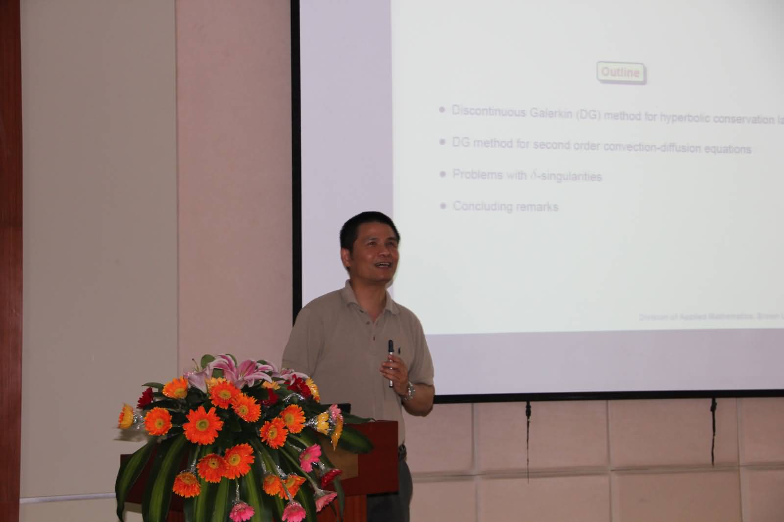 2013年5月20日下午4:30,9001cc金沙邀请美国布朗大学国际著名数学家舒其望教授在海韵教学楼504报告厅作题为”Discontinuous Galerkin Method for Convection Dominated Partial Differential Equations”的南强学术讲座。学院林亚南院长主持了讲座。