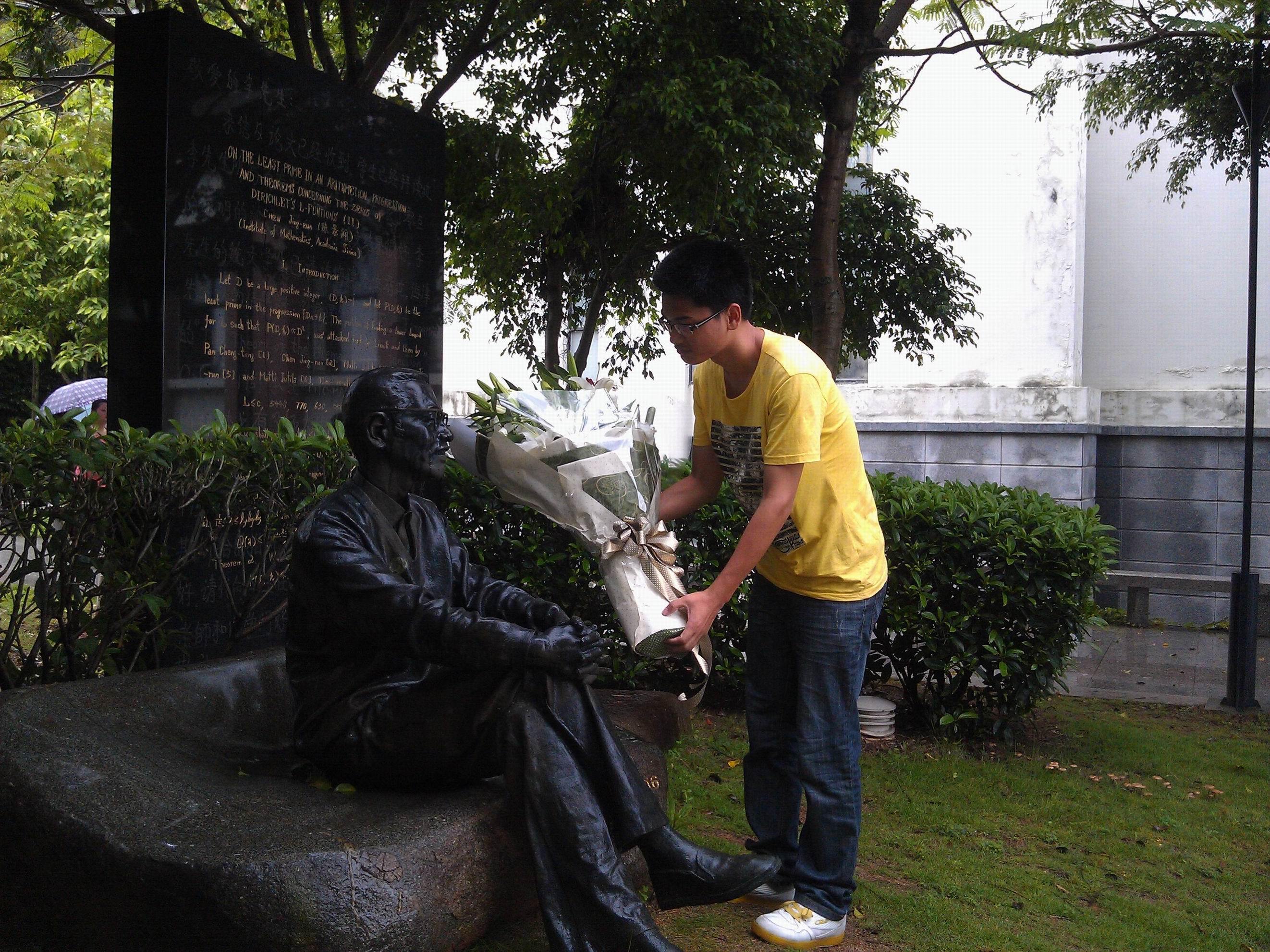 献花仪式首先由学生代表向这位科学巨匠铜像献上鲜花。接着师生代表向铜像三鞠躬,致以崇高的敬意和深切缅怀并瞻仰铜像。陈景润精神激励着一代又一代的数学学子,通过纪念活动把陈景润的科学精神很好地传承和发扬下去。