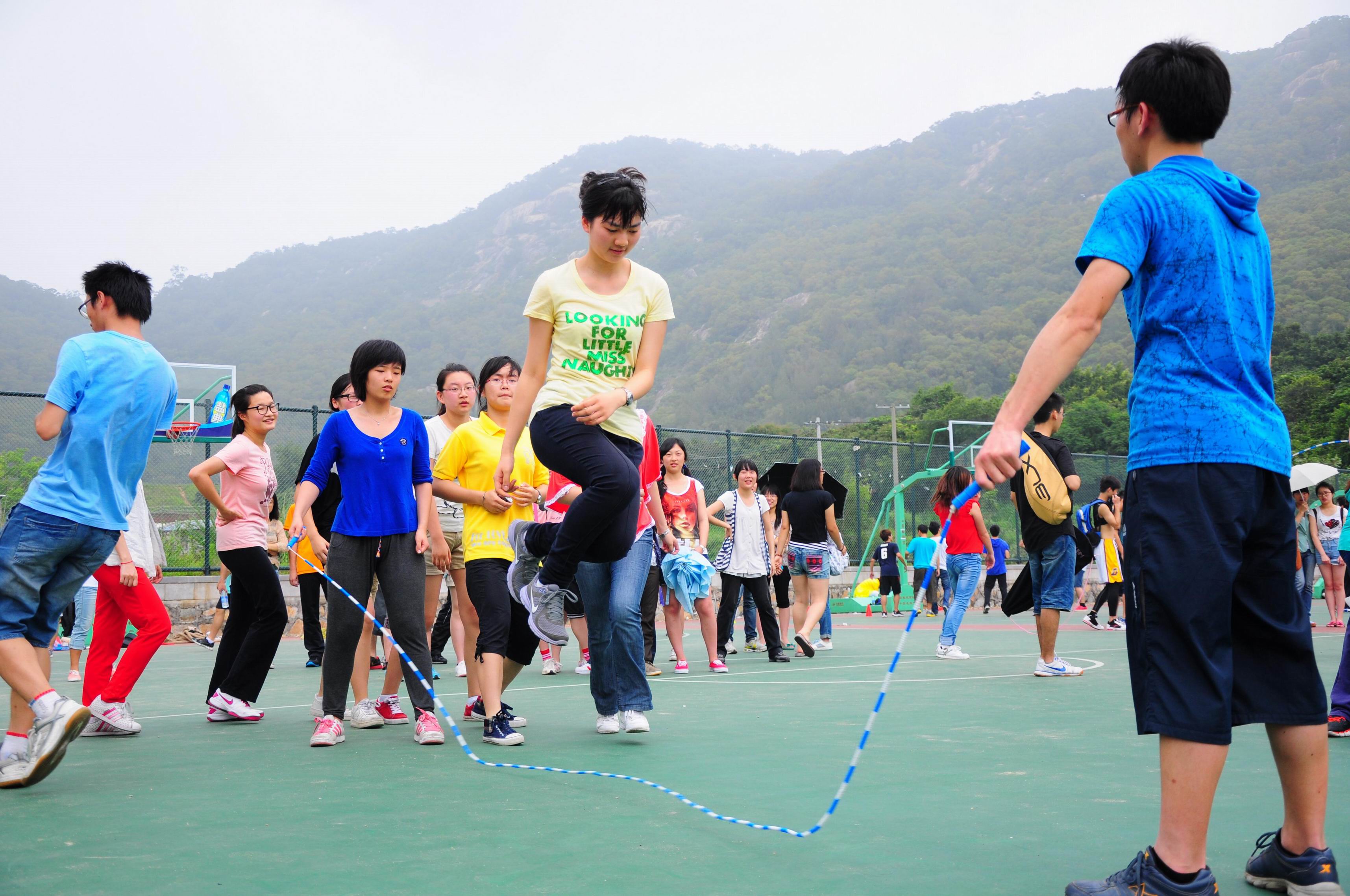 跳绳对于大家来说都比较熟悉,但是集体跳8字绳可就有难度了,2名同学甩绳,其他10名同学依次绕8字跳绳,需要所有队员的通力合作和配合默契,队员们有条不紊地穿梭在一根绳之间,快速的连跳让人目不暇接。2011级本科生组以3分钟内249个的好成绩取得第一。