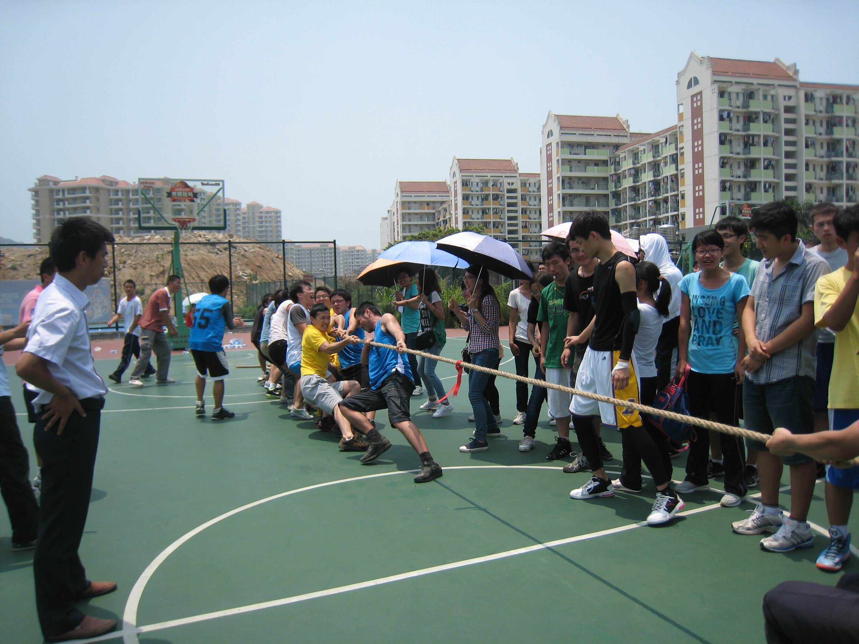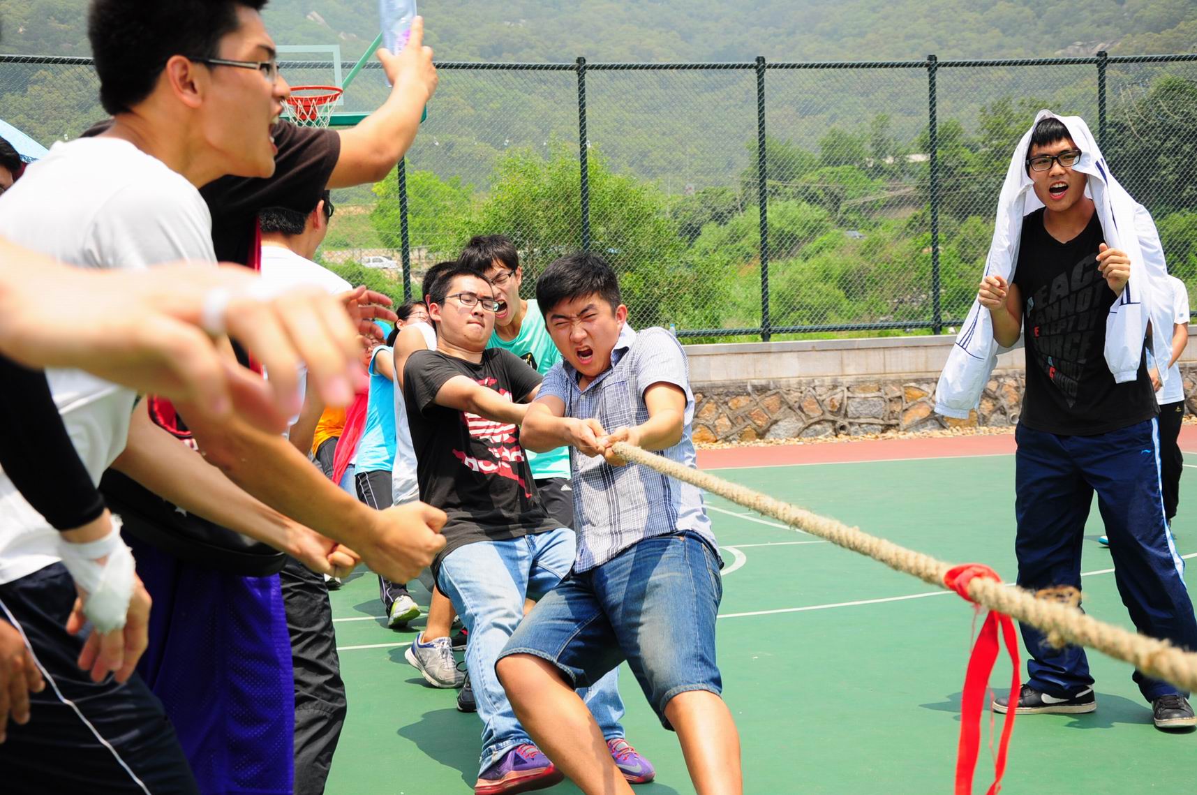 现场骄阳似火,但欢呼声、惊叹声和叫好声不断,气氛的热烈程度可见一斑。最后的重头戏就是拔河比赛,各年级自发组织,讨论站位,统一口号,都做得很积极很讲究。四支队伍队员们齐将力量用在一条线上,雄壮激昂的“一二一二”的加油声、口号声此起彼伏,也同样让观众们心潮澎湃,参赛者们热血沸腾。中间的僵持虽煎熬但胜利的瞬间是令人兴奋与喜悦的,在此次比赛中2011级本科生组凭借强大的团队阵容和默契的团队配合战胜2010级本科生组,而2012级本科生组在僵持中最终不敌研究生组。