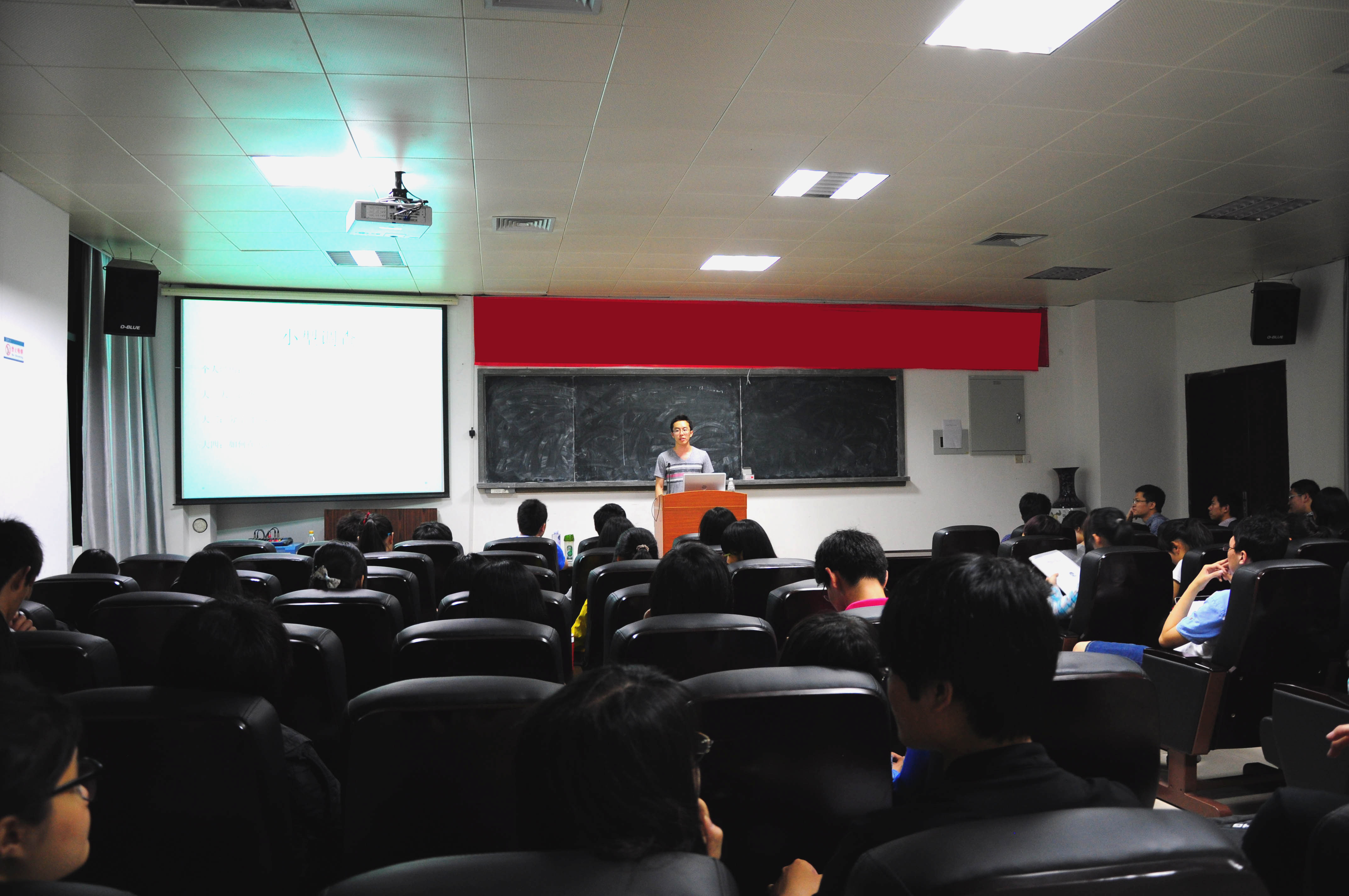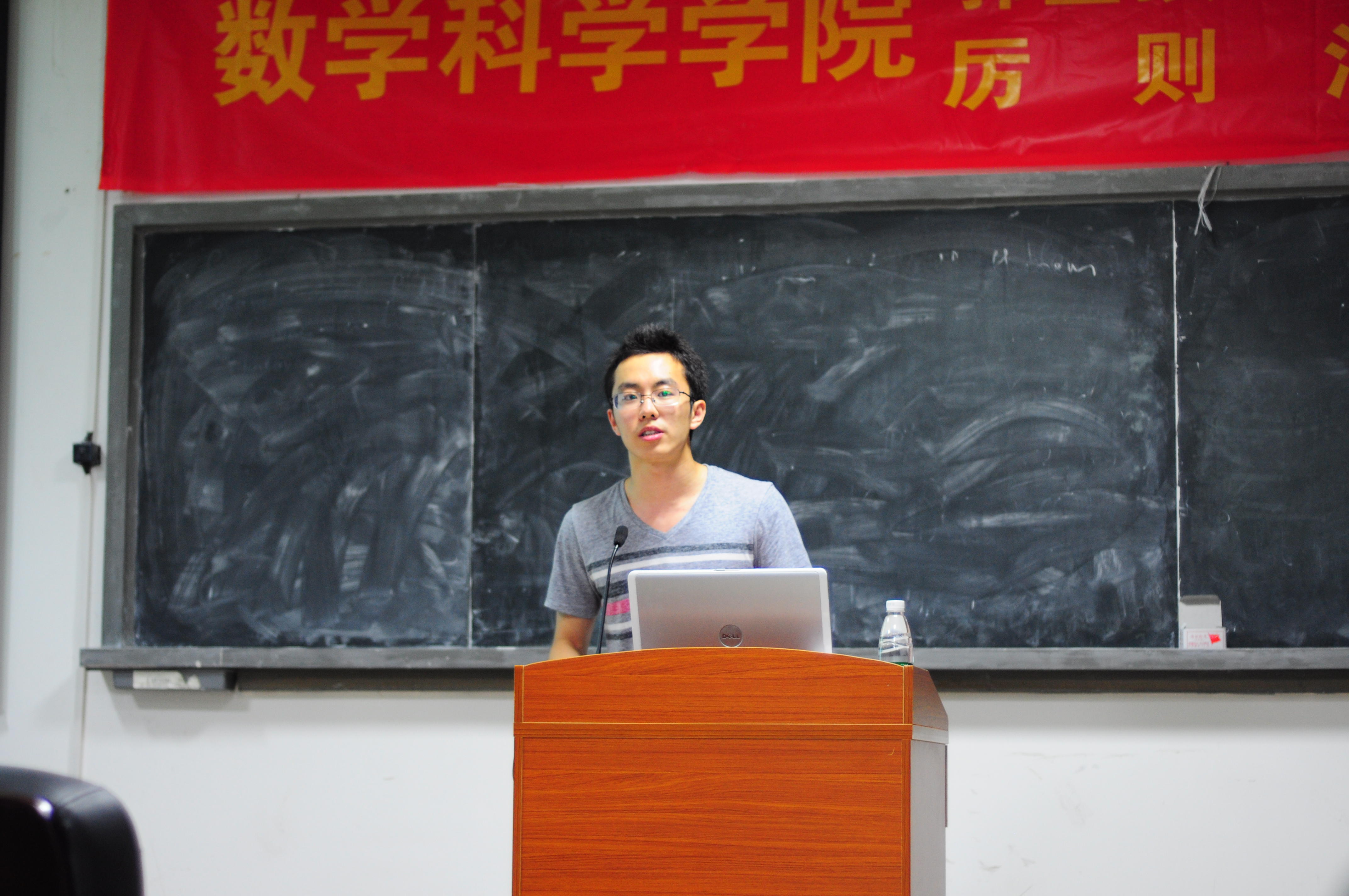 他为这次讲座准备的主题是“How to survive in 美帝”,主要介绍他在美国的生活并简要介绍了当初自己为何选择出国。总结来说,是确立目标后便勇往直前,坚持不懈追求梦想。讲到美国生活,他用三件事来概括:找实习,侃大山,写作业。并以切身经历反复强调了英语水平的重要性。
