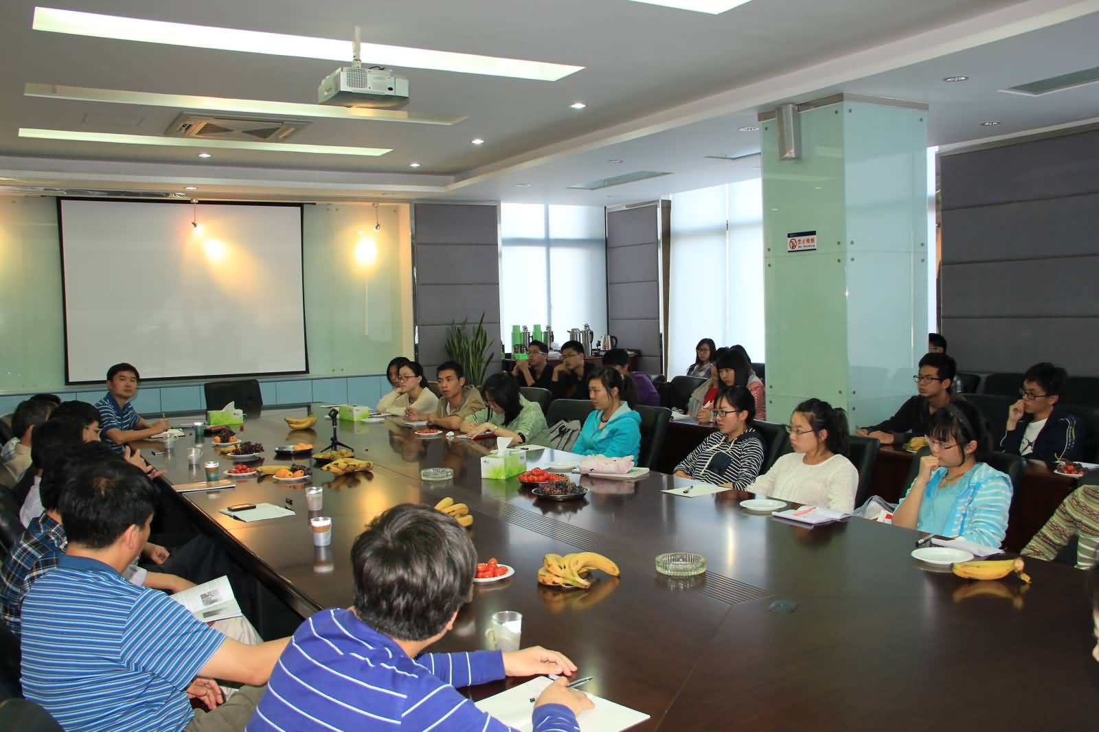 52日下午430,学院邀请清华大学数学系主任肖杰教授、朱彬教授、四川大学数学学院院长彭联刚教授、北京师范大学数学系邓邦明教授、福建师大陈清华教授在海韵园与全体拔尖计划同学举行座谈。学院林亚南院长、张明智书记、邱春晖副院长、信息与计算数学系杜魁副主任参加了座谈会。座谈会由张明智主持。
