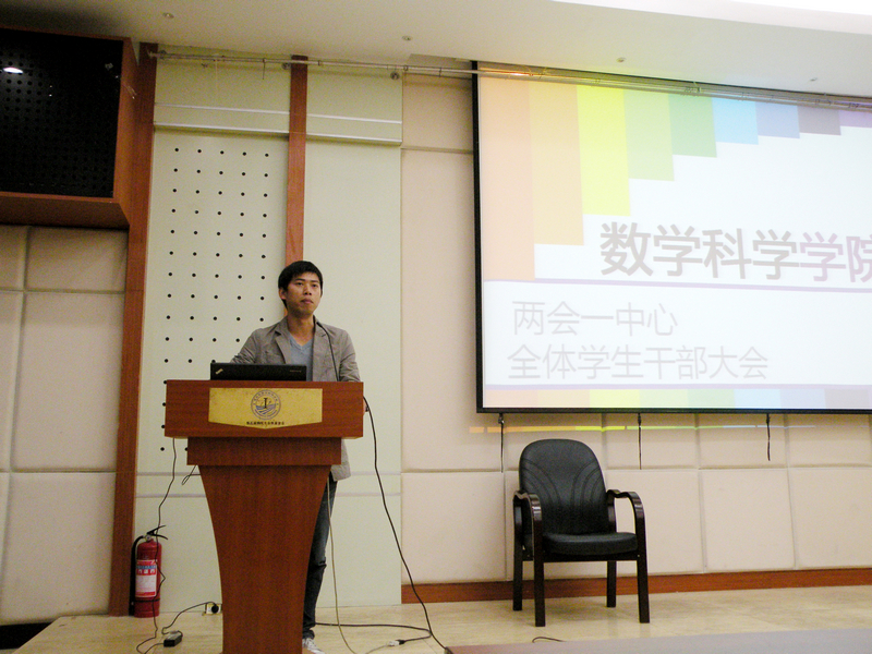 接着,主席助理崔建一对“两会一中心”的部门和主要工作内容做出总结,并指出唯有甘于奉献,通力合作,才能引领数院同学走向更美好的明天。