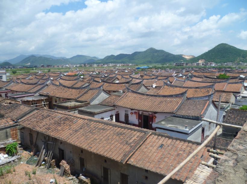 紧接着,实践队又赶往人称“闽南第一村”的东园镇埭尾村观览埭美水上古名居风貌。在两位大学生村官张先生和高先生的带领下,实践队先后寻访了埭美社的主庙——天后宫、划分古今建筑群的界线、“跨河古榕”、前后祠堂,见识了正在申遗的闽系红砖,并深入古厝内部,观摩古色古香的特色民居。然后实践队自愿分为两组,一组展开环村水上游,另一组则走向高处俯瞰规整的古厝。据了解,该处民居由开漳圣王陈元光第25世孙陈均惠的第八世后裔开基,至今仍为陈氏族群的聚居地,建筑风格极具闽南特色,于民国时期扩建,响应新农村建设而与时俱进,但却严守先人禁改建筑格局的遗训。