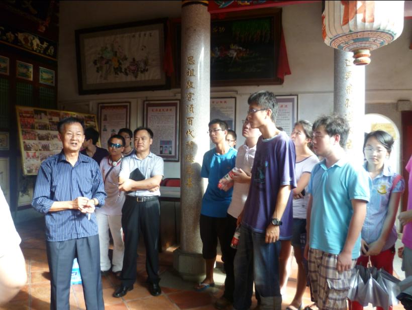 随后,实践队寻访连战故里——马崎村,重点参观了有“八闽名祠”之称、 “漳台青少年文化交流基地”连氏宗祠。宗祠里陈列着闽南各地区连氏家族的源流、连战先生的亲笔题词、以及两岸文化交流的图片等。当地的老人为实践队解说连氏宗祠的建造与修缮事宜,并热情地邀请实践队前往江边一睹赛龙舟的风采。在连战故里,实践队感受着宗族继往积善与垂教后嗣的使命感与荣誉感,深刻体会到闽台一家亲的血缘关系。