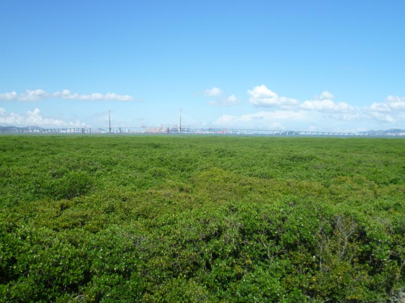 出发前,郑副书记对本次实践活动做了动员讲话,提醒同学们注意防暑降温和人身安全。下午15:20,实践队抵达了位于龙海市紫泥镇的甘文农场。龙海市团市委副书记宋智坚为实践队简述了甘文农场的概况,并引导实践队俯瞰农场的鱼蟹养殖基地,远眺造船厂,参观了甘文红树林保护区。该红树林景区作为省级自然保护区,面积达200多公顷,区内保持生物多样性,充分体现着生态自然的和谐。站在瞭望台上,放眼望去,青葱苍郁,蔚为壮观。实践队不仅为如此壮观的景色所折服,更学习了红树林湿地的重大生态作用,意识到应当更加珍惜资源,保护生态平衡。