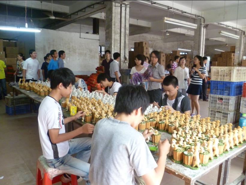 稍事休息后,实践队来到本次实践的最后一站,港尾工艺品加工厂。参观了工艺品成品陈列室之后,实践队进入生产车间,观察工人们为工艺品半成品打磨,拼装,上色。同学们都惊叹于工人们精湛的技艺与细致入微的耐心,也通览了工艺半成品加工的过程。