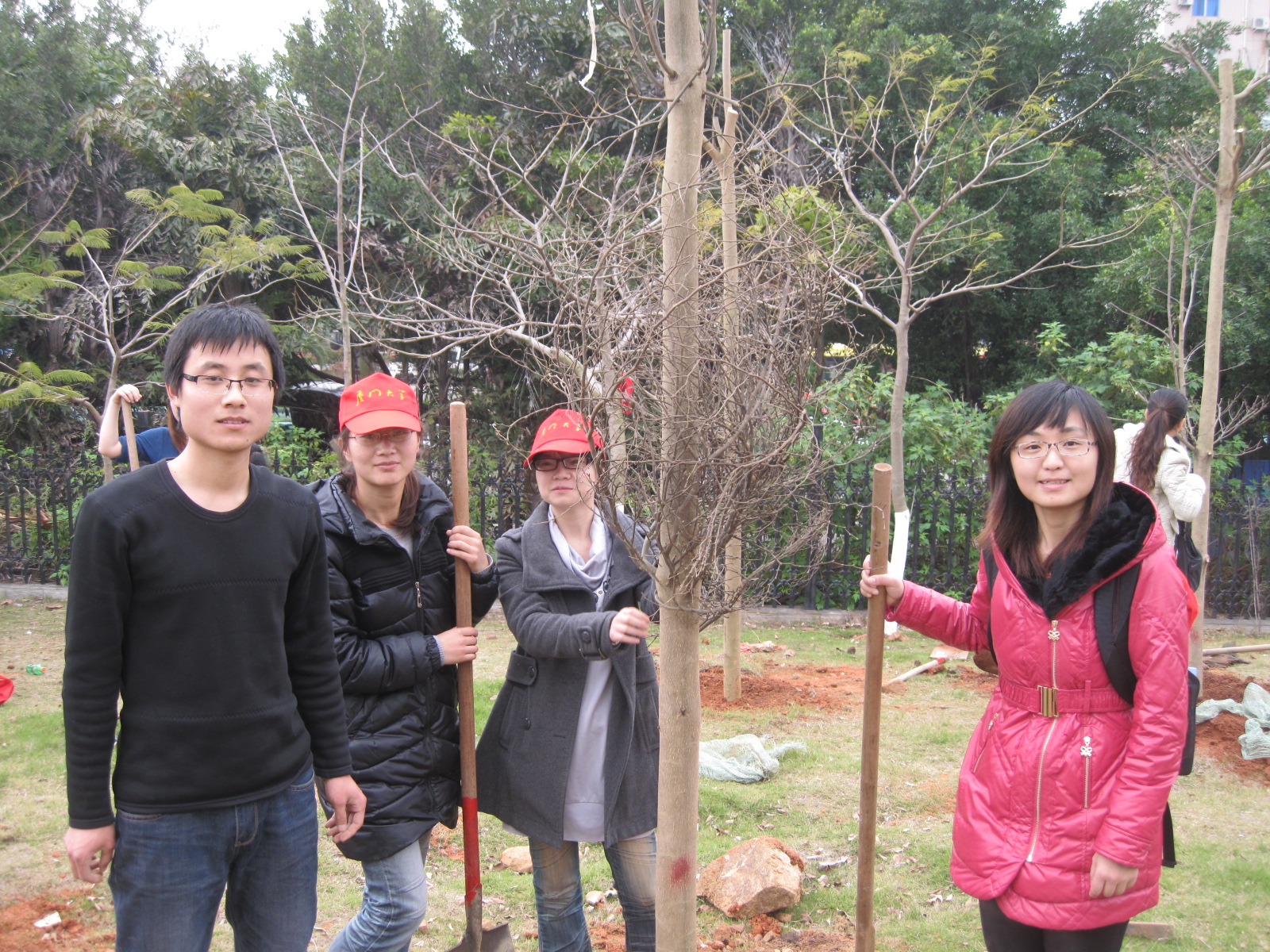 3月3日上午9:30,在院党委书记张明智和辅导员陈向柳的带领下,我院本科生20人与研究生10人参加由校团委组织的海韵园区义务植树活动。值得一提的是,本次参与活动的本科生中,有6位10级和3位11级的同学特意从漳州校区前来参加,我院学生的热情可见一斑。