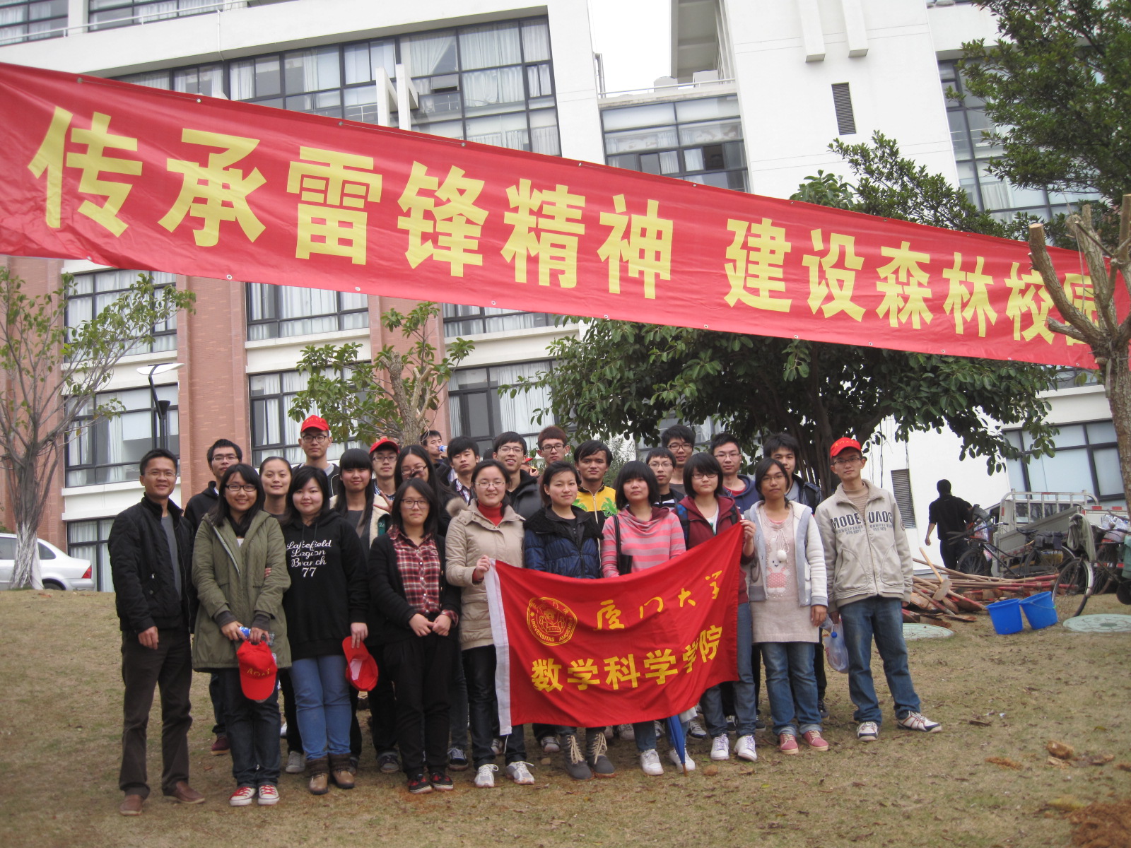 我校今年的植树节系列活动以“传承雷锋精神,建设森林校园”为主题,旨在号召师生们传承雷锋精神并赋予其新的时代内涵,以实际行动绿化我们的校园,共建“森林厦大”。