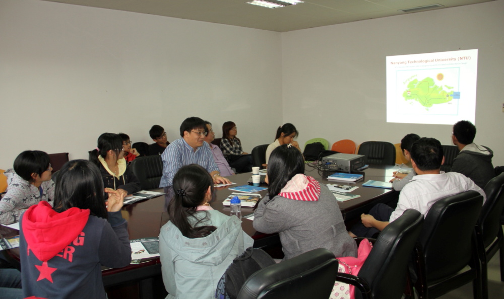 来访的新加坡教授和本学院本科三年级的部分学生一起座谈,林亚南院长和张明智书记参加了座谈会。王华雄教授和吴国华教授介绍了南洋理工大学数学科学系的专业设置、研究方向、教师团队,并详细介绍免试接受博士研究生的选拨流程、课程要求、奖学金类型及入学申请办法等。两位教授与现场学生进行交流,针对同学们提出的问题给予详细的解答。