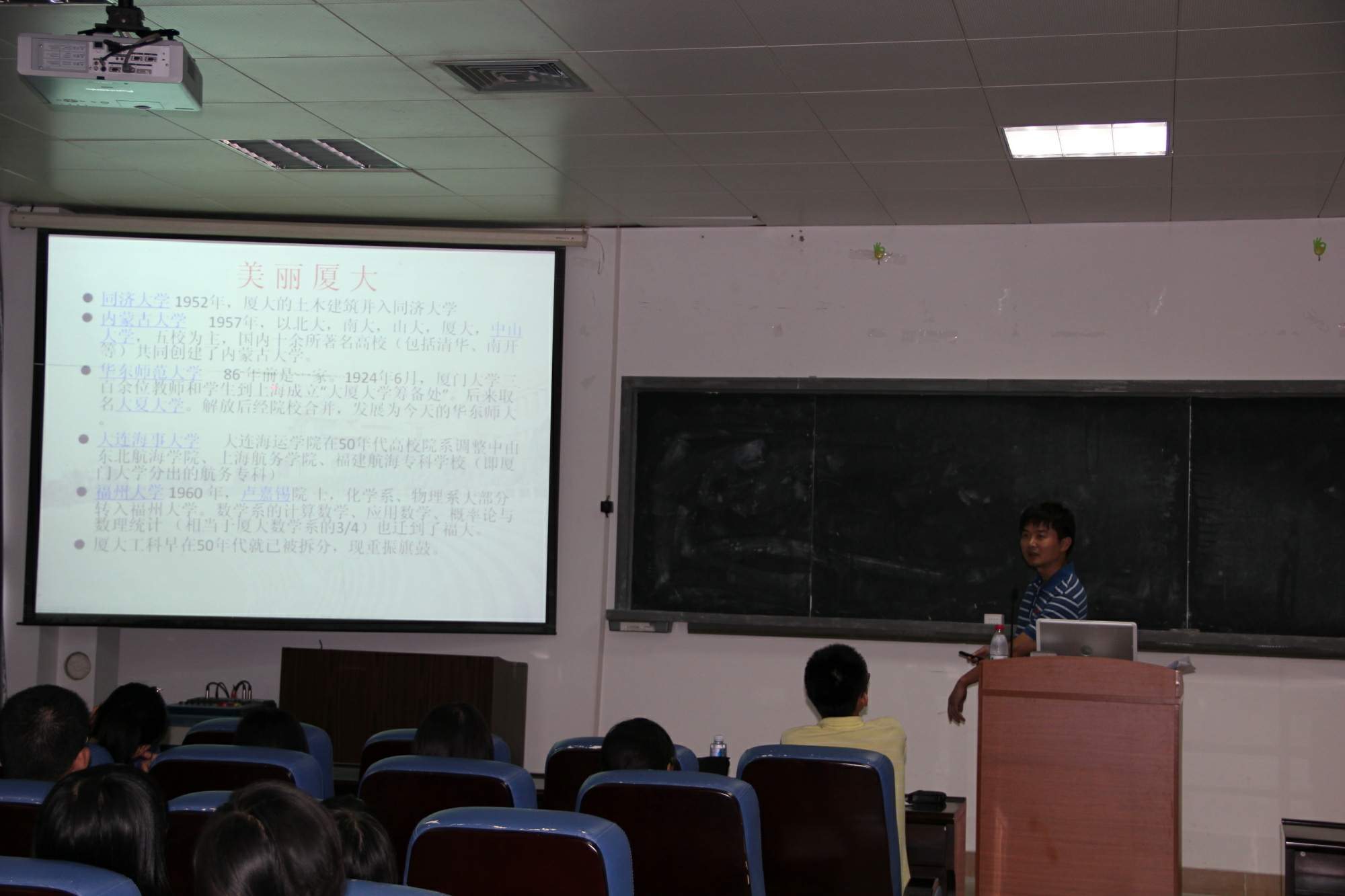 夏令营期间,学院党委书记张明智作了题为“美丽厦大,魅力数学”报告,图文并茂地向介绍了厦门、厦大、学院的有关情况。院长林亚南作“精彩数学,魅力学院”报告,阐述了数学作为基础学科,同时饱含在生产、生活中无处不在的应用性、公益性,介绍了学院近年来的发展情况。副院长许传炬作“厦门大学创新型数学人才培养”报告,介绍了学校及学院在创新型人才培养探索和实践的有关做法,对同学颇为关心的学科及师资情况详细作了说明。