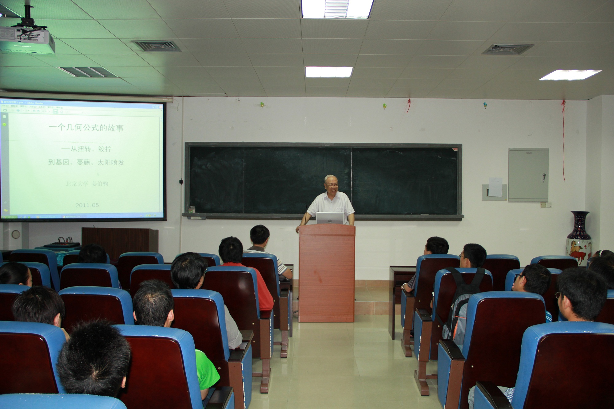 5月20日与5月23日,应9001cc金沙邀请,中国科学院院士、北京大学教授姜伯驹教授分别在漳州校区和本部海韵园做题为《一个几何公式的故事——从扭转、绞拧到基因、蔓藤、太阳喷发》的精彩学术讲座。讲座分别由9001cc金沙党委书记张明智和副院长邱春晖主持,学院师生代表参加了讲座。