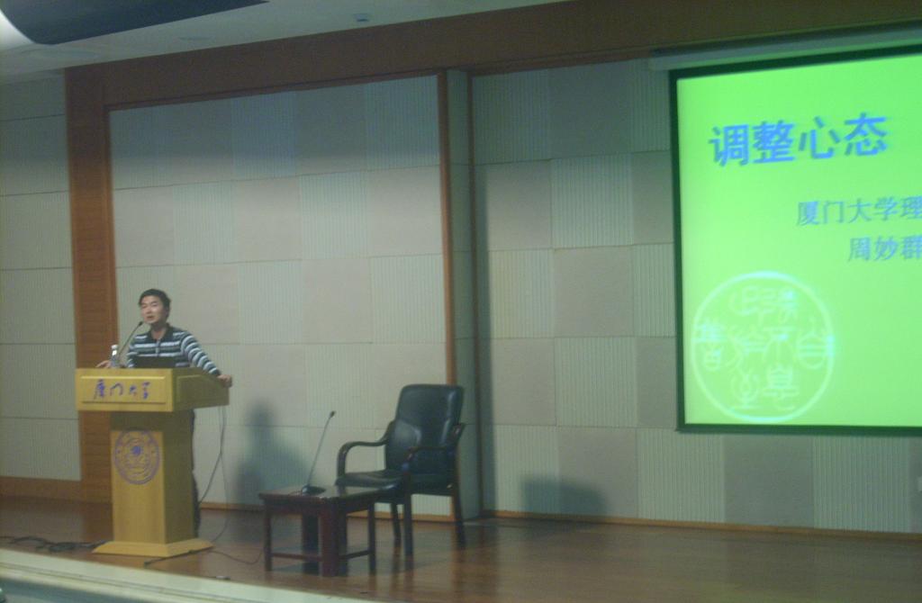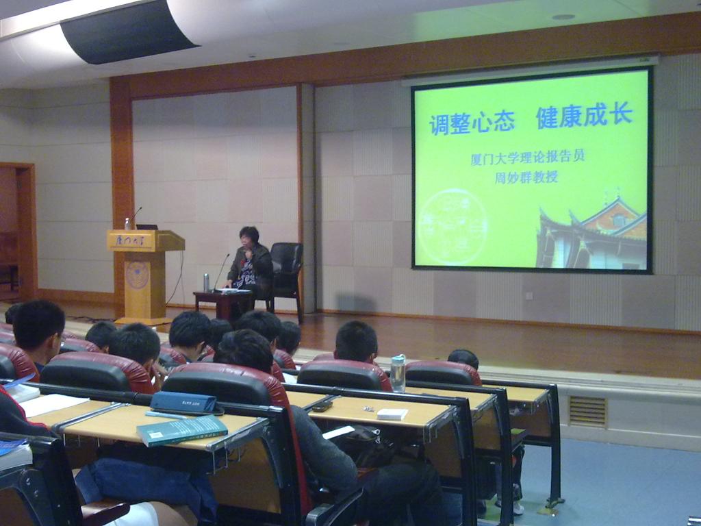 报告会中,周妙群教授首先明确提出,大学生必须努力学习科学知识,逐步规划自己的人生目标,并在树立正确的世界观、人生观、价值观,掌握足够的生存能力以及拥有健康的身体和心理的基础上不断提高个人素质。其次,周教授从自身的经历出发,从人文关怀和心理疏导两个方面介绍了大学生该如何调整好自己的心态。她鼓励大一新生多参加社团活动,通过在各方面积极表现自己来获得成就感,提高自己的综合素质,同时又要敢于面对失败,增强自身抗挫折的能力。最后,周妙群教授从大学如何面对沉甸甸的社会责任、就业难和情感等问题,语重心长地告诫大家在关心自己发展的同时,更要明确自己的社会责任。
