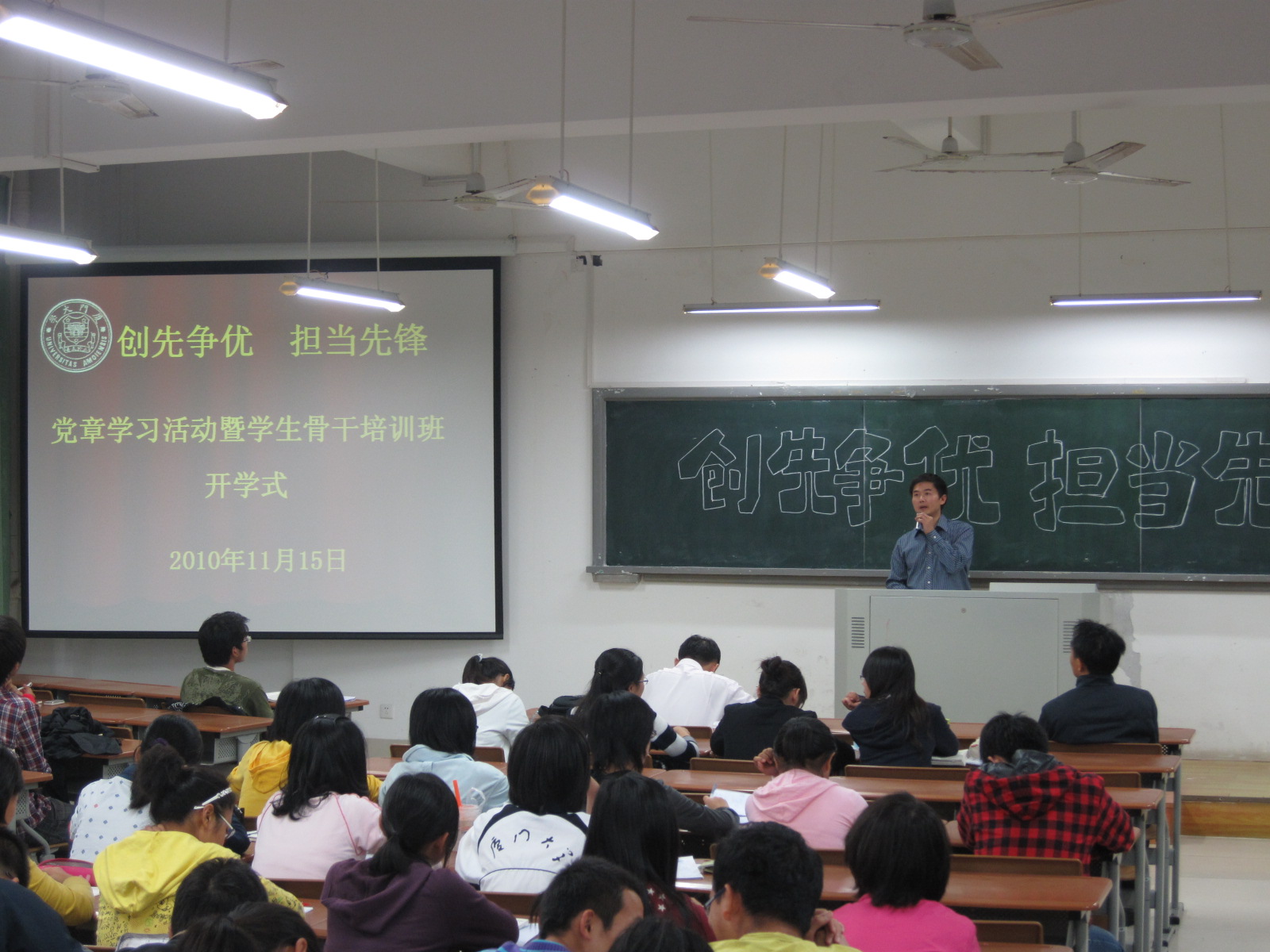 按学校部署,9001cc金沙在深入开展创先争优活动中,结合学院实际情况,围绕提高人才培养质量这一中心工作,扎实推进、务求实效,把创先争优活动与创建优良学风结合起来,与同学自身成长成才结合起来。11月15日晚,以突出专业思想教育和优化学风建设为主题的创先争优活动报告会在漳州校区主楼群4号楼511教室举行,学院党委书记张明智作动员讲话,院长林亚南作“弘扬陈景润科学精神”报告。2010级基地班班主任宣飞红副教授、学院团委副书记杨机像与2009、2010级全体学生参加报告会。