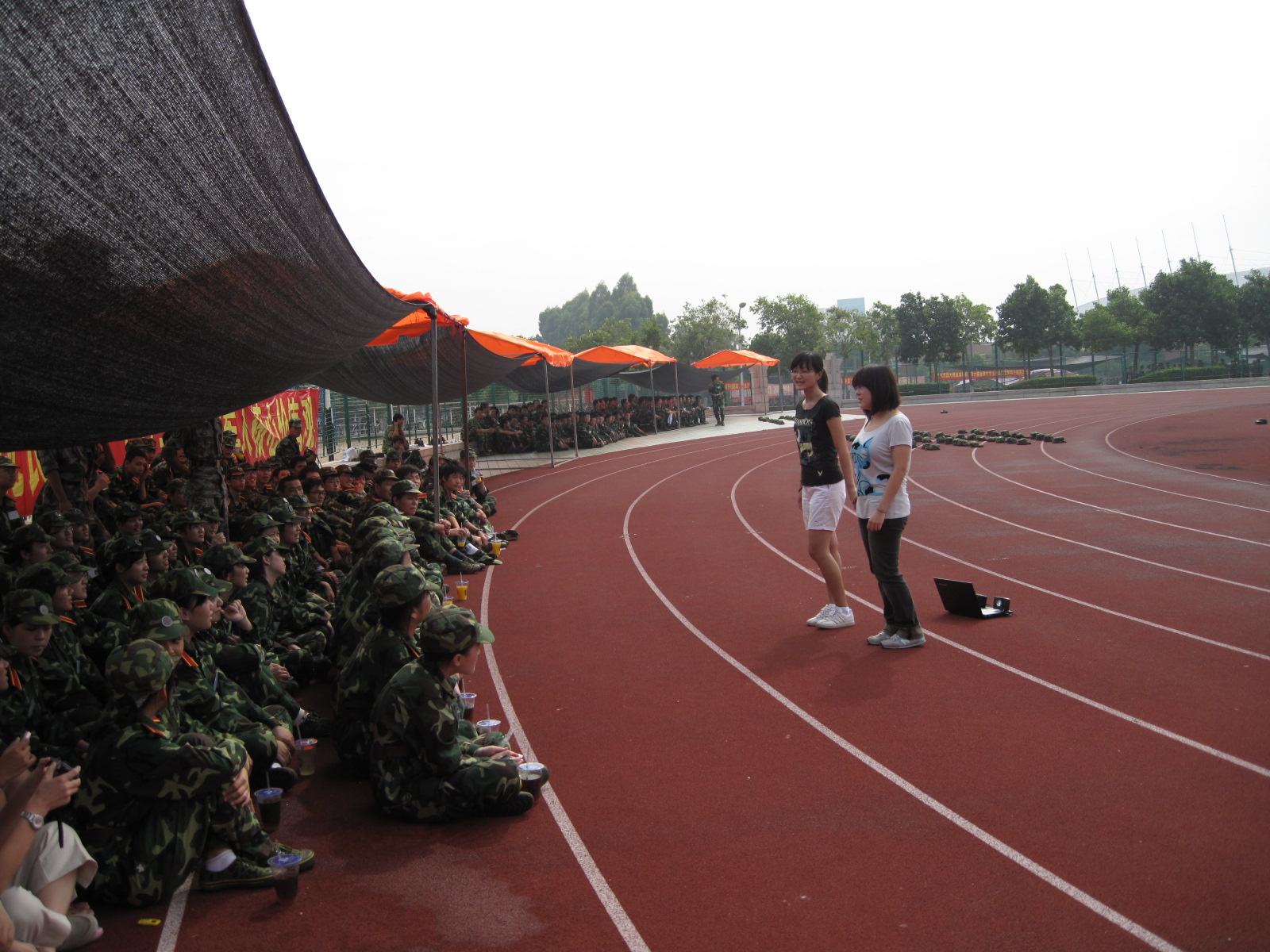 两位领导讲话完毕后,09级同学带来了3个娱乐节目——男生自弹自唱,女声合唱和啦啦操表演,受到了10级新生的热烈欢迎。