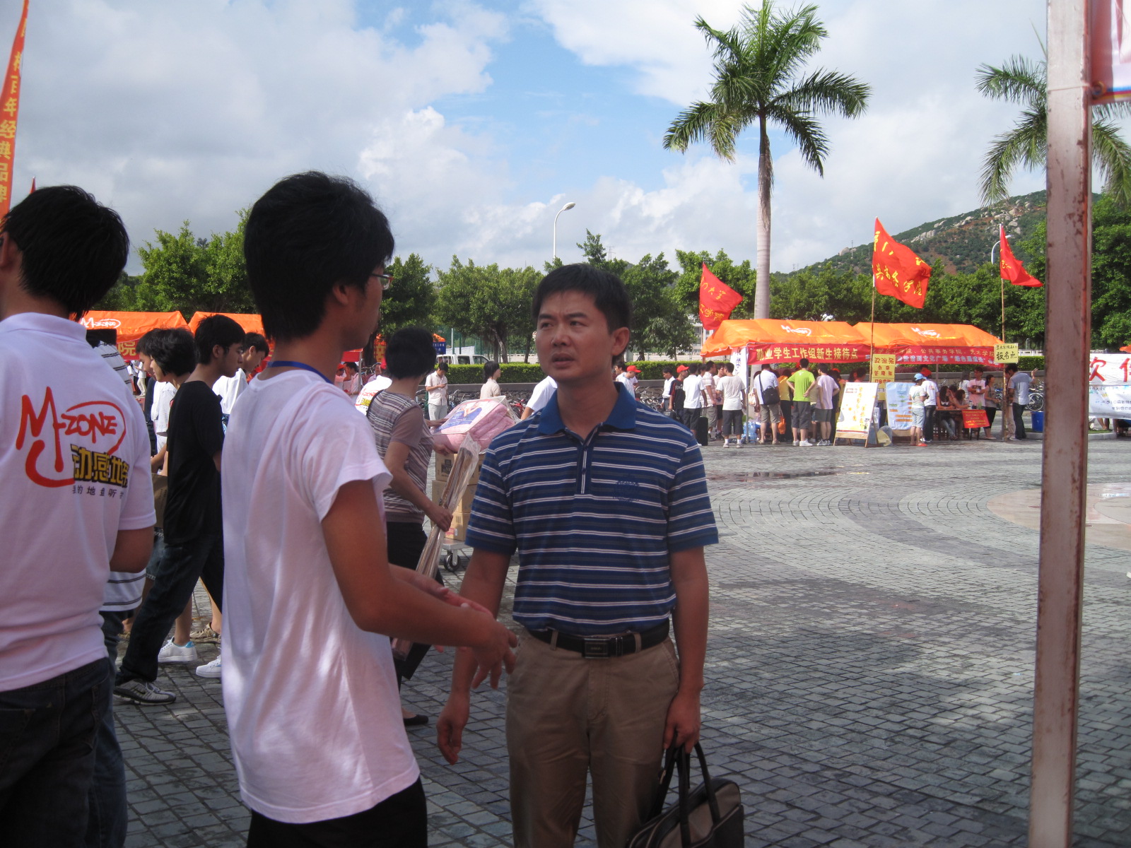 在步行广场引导点,张明智看到同学们不畏酷暑,冒着高温热情迎接新生到来,深切地叮嘱同学们多喝水,注意轮班,保重身体。在新生报到注册点,张明智对快速、有序的入住手续给予了充分评价,指出要尽可能地方便新生及家长,让新生快速办完手续入住。在学生宿舍,张明智代表学院热烈欢迎他们成为学院的新成员,并向新生及家长介绍了近年来学院发展的有关情况,鼓励新生坚定信心、尽快适应大学生活。