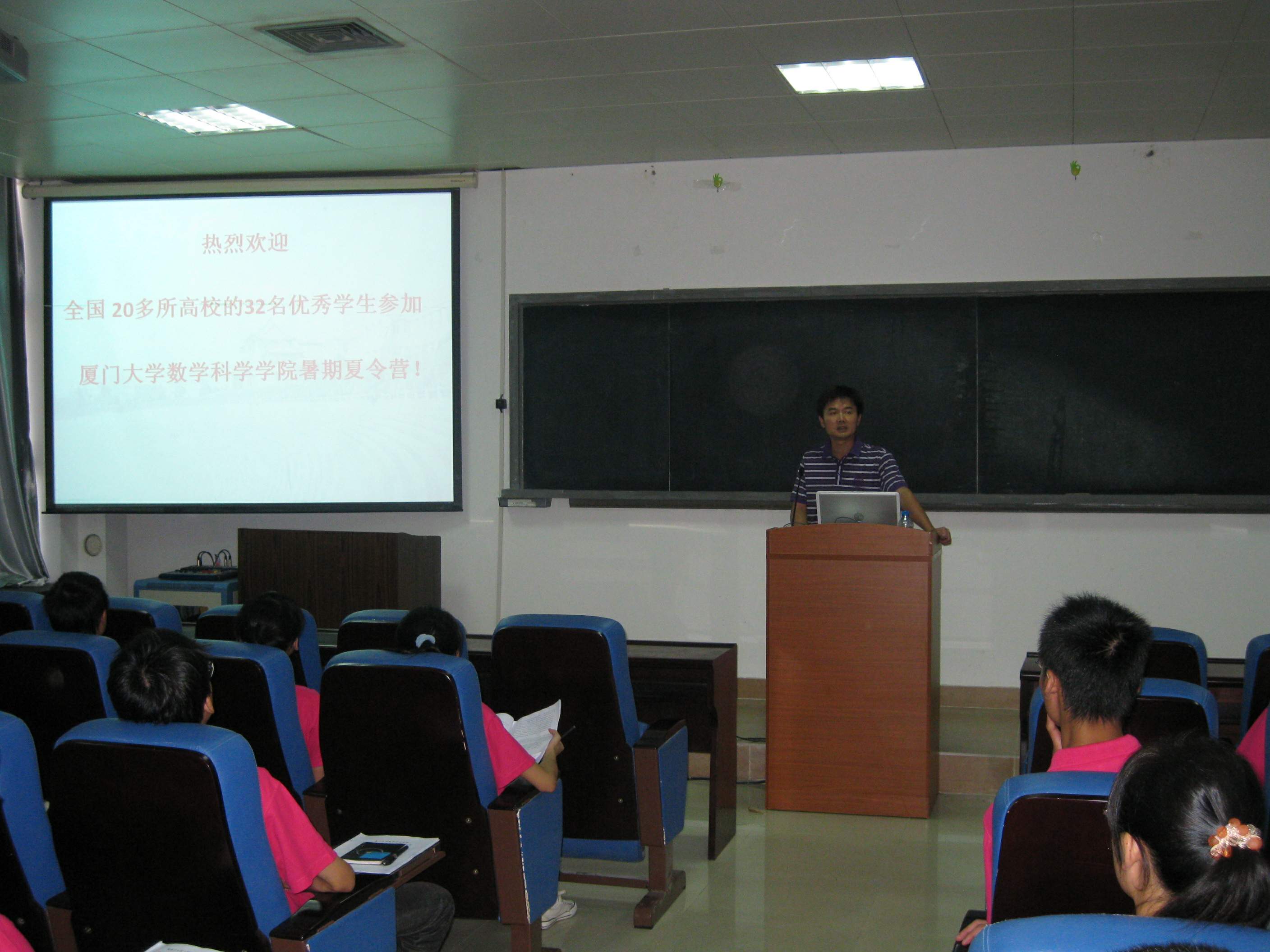 本次夏令营安排了3场讲座和4场学术报告。3场讲座包括:学院党委书记张明智作“魅力厦门、魅力厦大、魅力数学”讲座,图文并茂地向介绍了厦门、厦大、学院的有关情况;院长林亚南作“陈景润的传奇人生和精神魅力”讲座,解读陈景润的传奇人生,传颂陈景润的精神魅力,弘扬陈景润的科学精神;副院长许传炬作“厦门大学创新型数学人才培养”讲座,介绍了学校及学院在创新型人才培养探索和实践的有关做法,对同学颇为关心的学科及师资情况详细作了说明。4场学术报告包括:厦门大学国家“”教授的“多项式逼近及期应用”;副院长许传炬教授的“基于偏微分方程的科学计算”;9001cc金沙党委副书记谭忠教授的“世界的本质是数学”;基础数学与应用数学系主任钱建国教授的“从四色猜想到图论”报告。