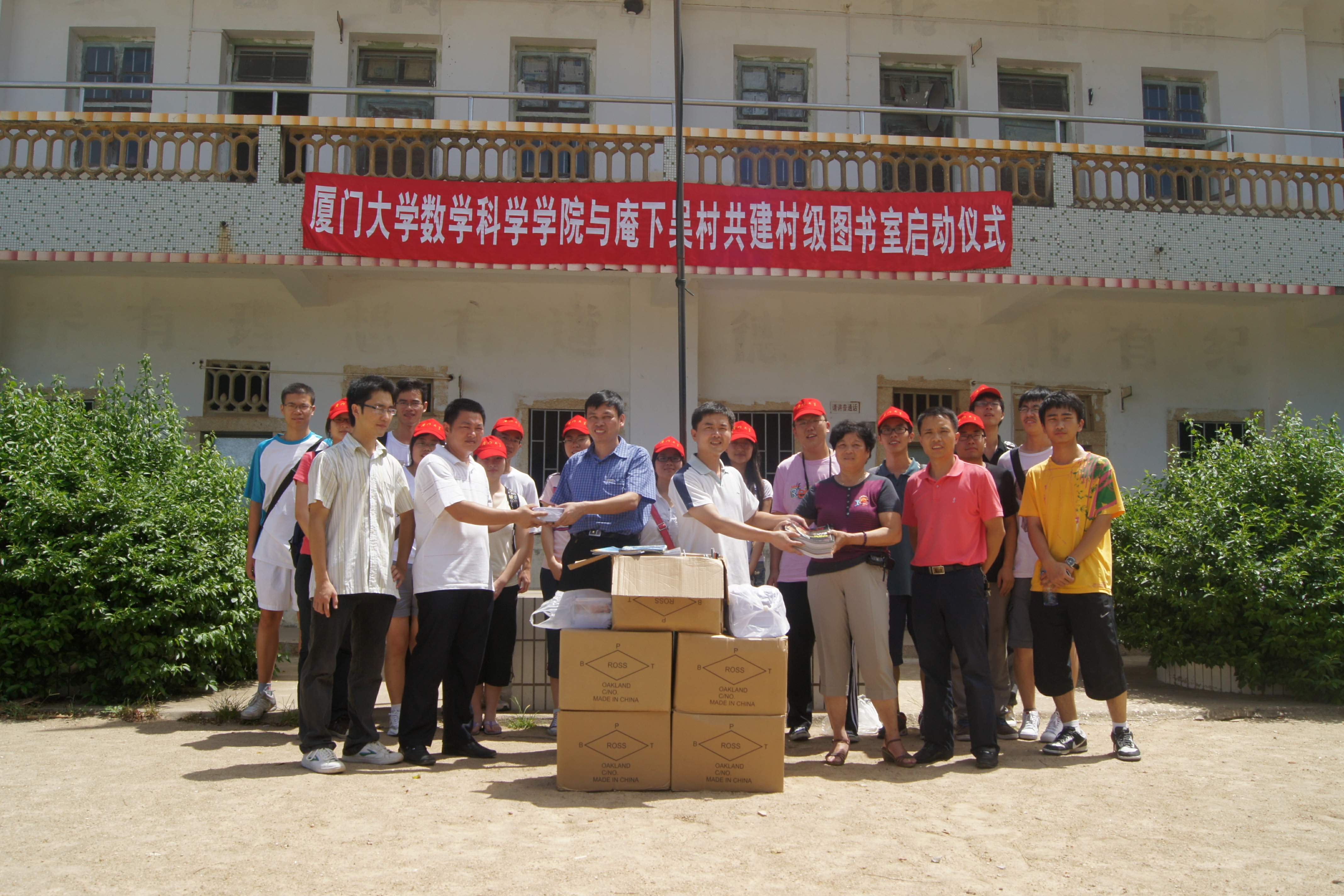 张明智一行首先来到庵下吴村小学,参加9001cc金沙与庵下吴村小学共建图书馆仪式,并代表学院向对方赠送书籍和作业本。这些书籍由学生自愿捐赠回收而成,包括课外读物、报刊杂志等适合小学生阅读的教科书和杂志刊物。