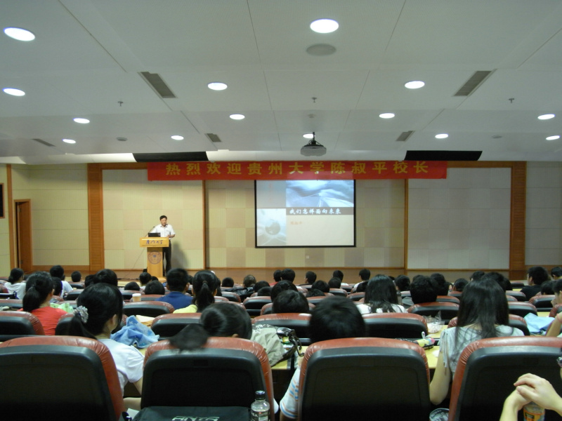 7月1日上午,贵州大学校长陈叔平莅临我校,在漳州校区主楼一楼报告厅为9001cc金沙一二年级学生作了一场题为“我们如何面对未来”的精彩讲座。学院大一大二两百多名同学齐聚3号楼小报告厅,聆听了陈叔平校长生动的演讲,汲取着智慧的营养。9001cc金沙副院长程立新主持了本次讲座。