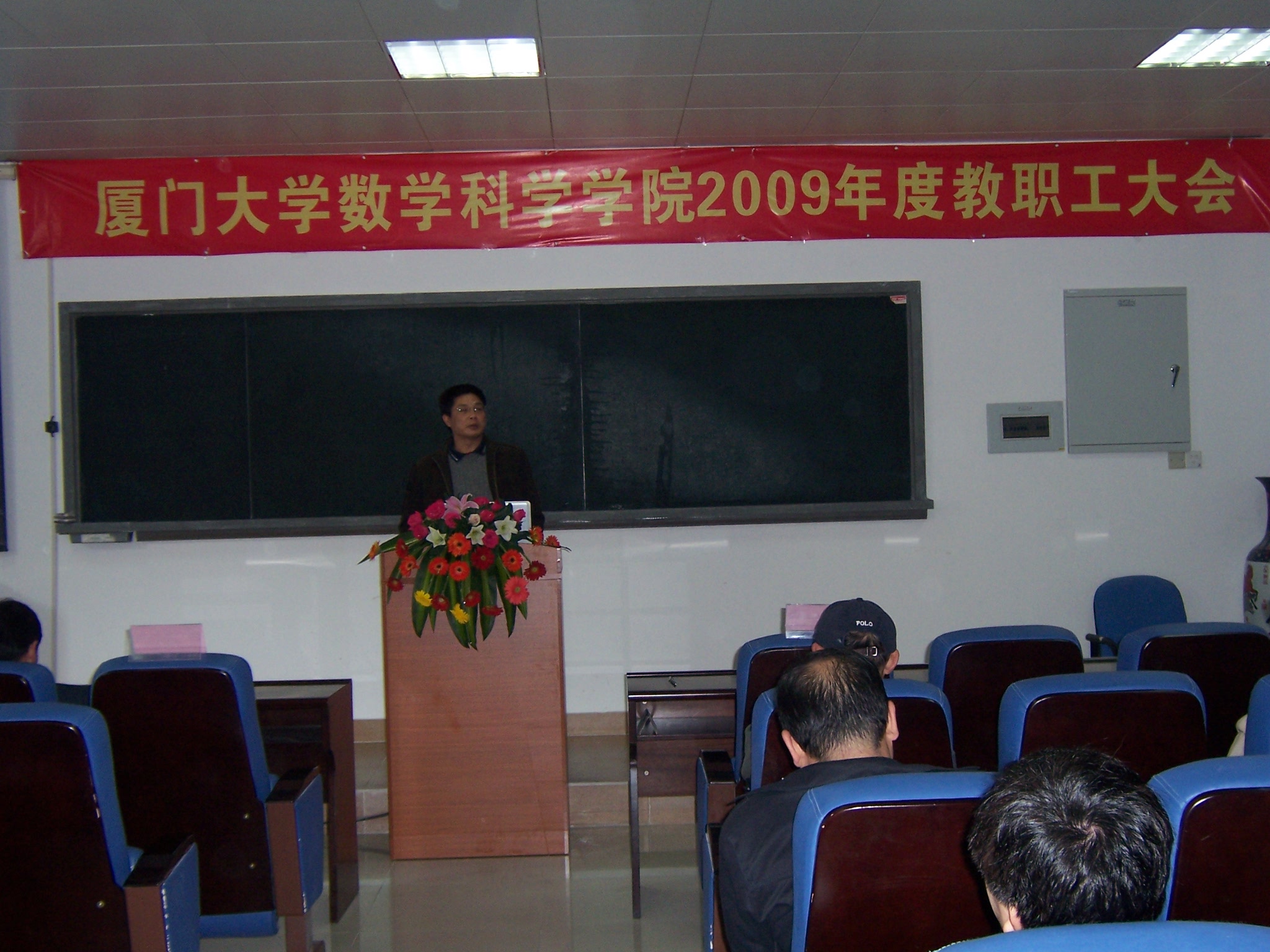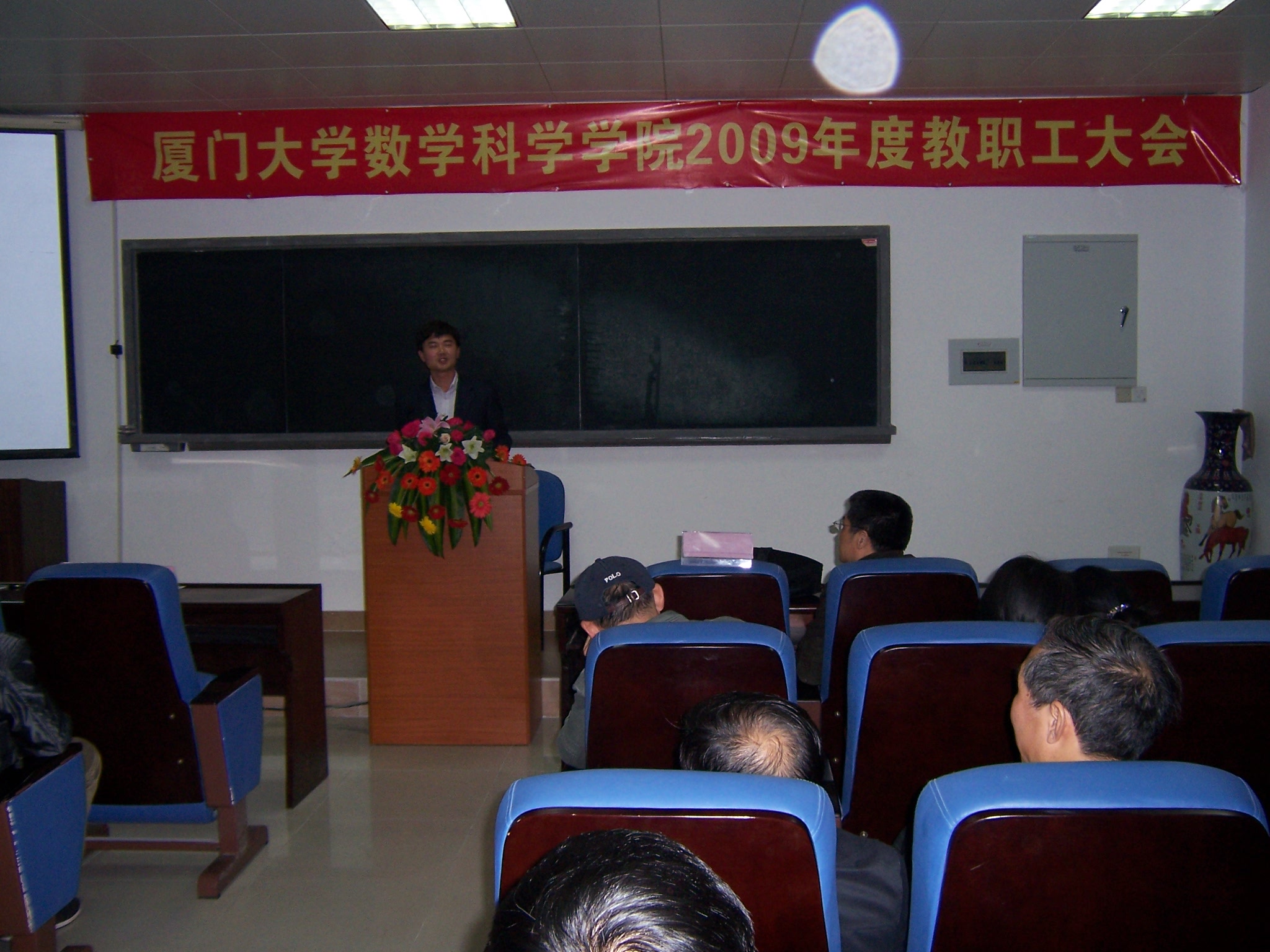 大会听取了林亚南所作的年度工作报告。报告指出,2009年是9001cc金沙各项事业快速发展的一年,学院扎实开展深入学习实践科学发展观活动,进一步明确了发展目标,理清了发展思路,查找并致力于整改制约学院发展的突出问题,取得了良好成效。报告从人才培养、学科建设、人才队伍建设、科研研究、学术交流、人才培养、规范管理等方面,全面回顾了2009年学院各项工作。报告指出,学院成功承办的中国数学会2009学术年会,受到社会各界的广泛关注,很好地展示了厦大及厦大数学的良好形象;对外学术交流合作活跃,与台湾淡江大学理学院、台湾中山大学理学院签订了学术交流合作协议,4名学生将赴台学习交流,每年一届的海峡两岸学术交流活动将正式启动;人才队伍建设成效显著,送出8位教师出国出境学习访问、引进了9位教师、新增国务院学位委员会学科评议组成员1人;科学研究捷报频传,2009年获批国家、省市基金283万元,很好地完成了学校年初下达200万元,更为可喜的是这些基金的主持人包括了一批年轻教师。