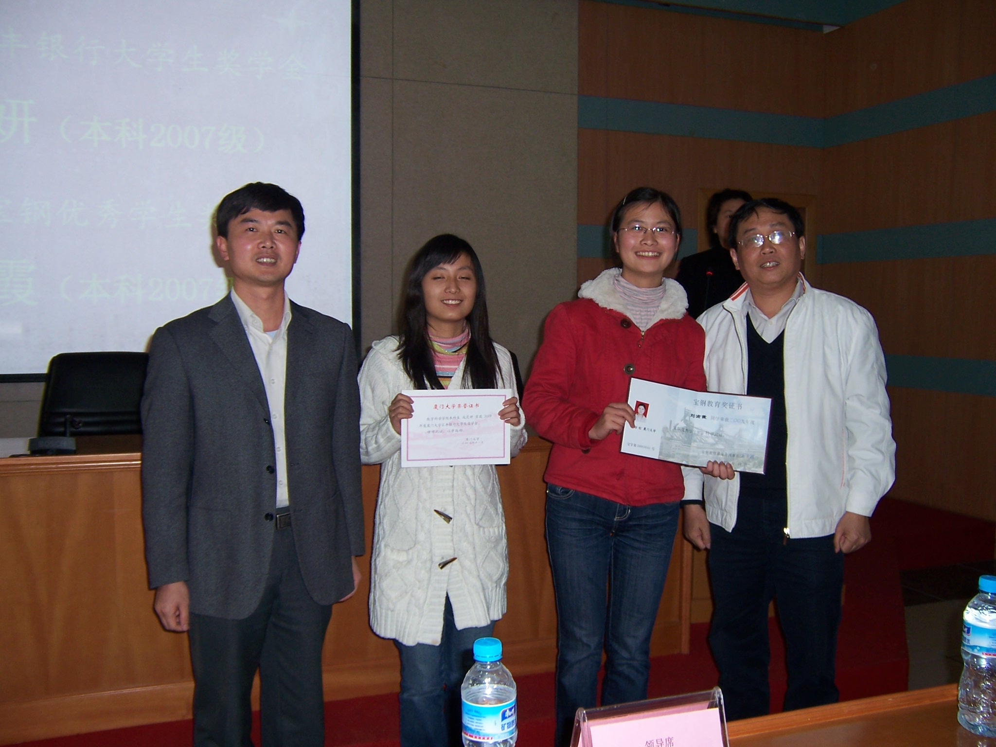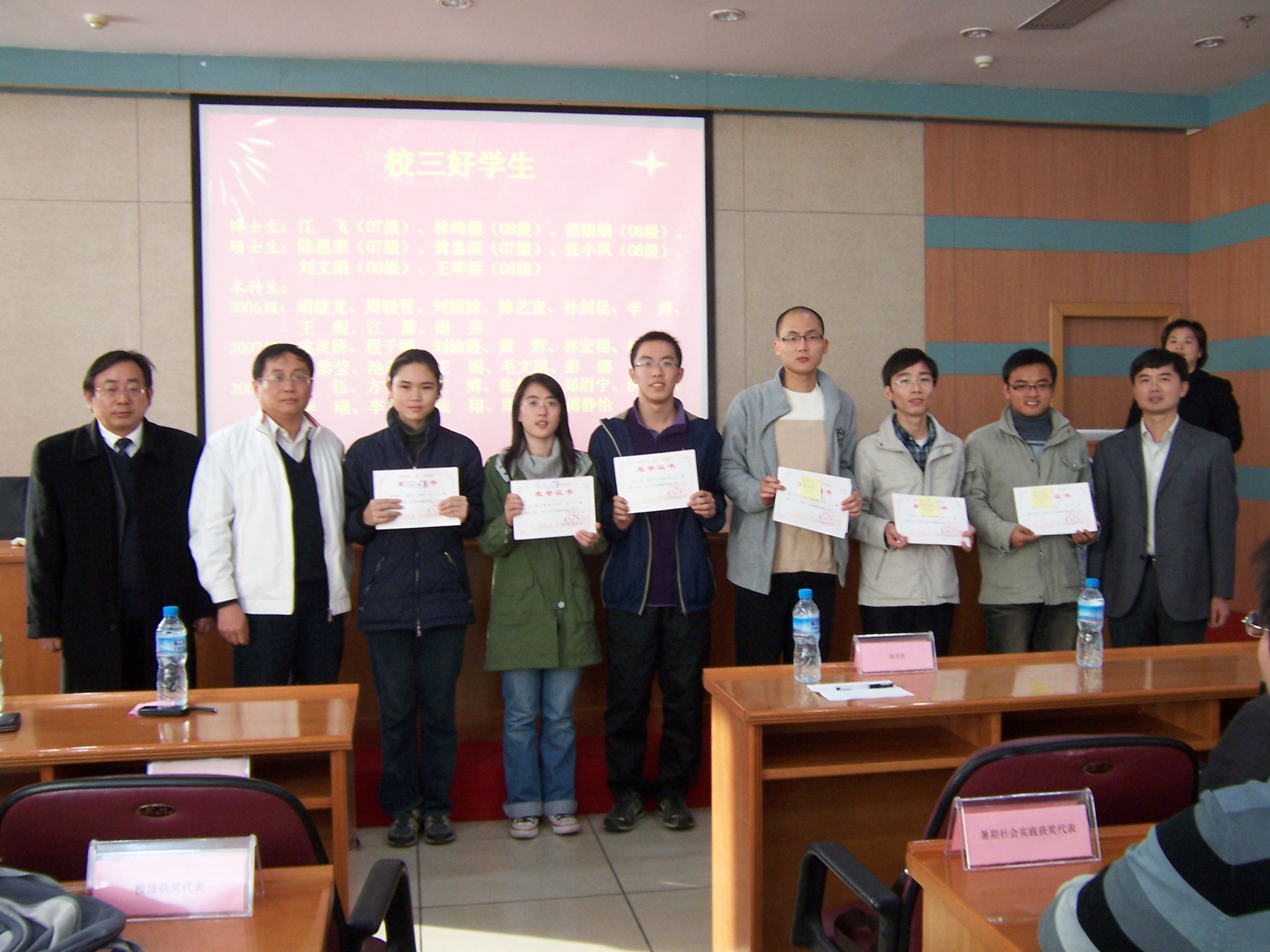 院长林亚南教授、院党委张明智书记、副书记谭忠教授为获得学校表彰的“优秀三好学生”、“三好学生”、“优秀学生干部”颁发证书